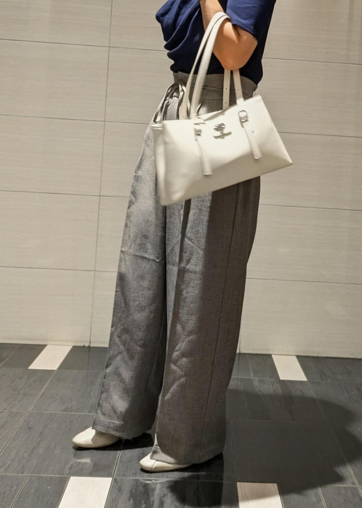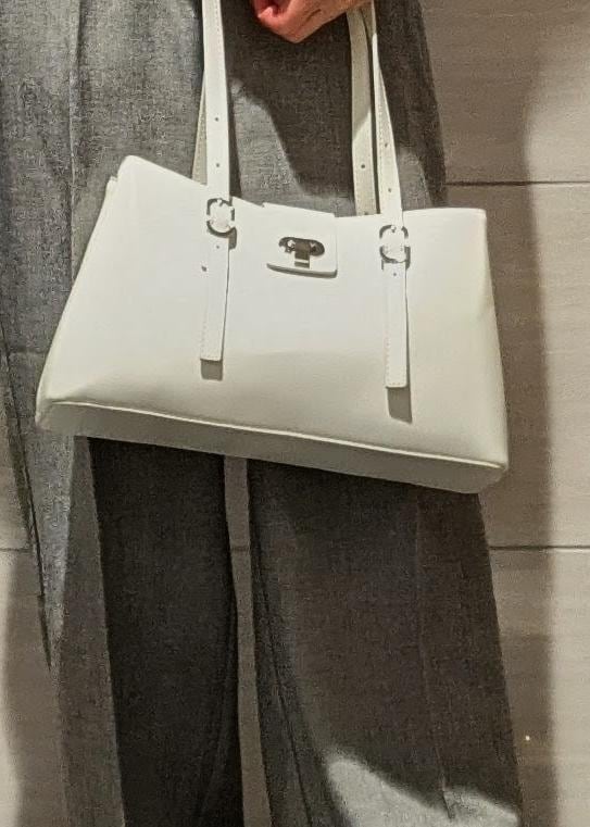 VIS2層ロングハンドルバッグキナリ / F¥6,919レビューポケットもたくさんついているなので収納しやすいです。エナメ素材で上品な素材感になっています。