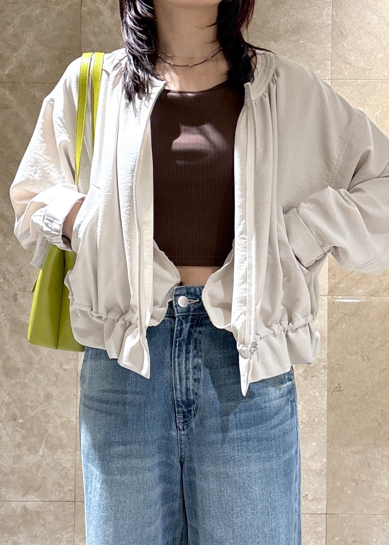 VIS美easyリネンライクジップ裾フリルブルゾン/イージーケア・接触冷感キナリ / F¥6,589レビューシワがつきにくい素材なので持ち運びにも便利!