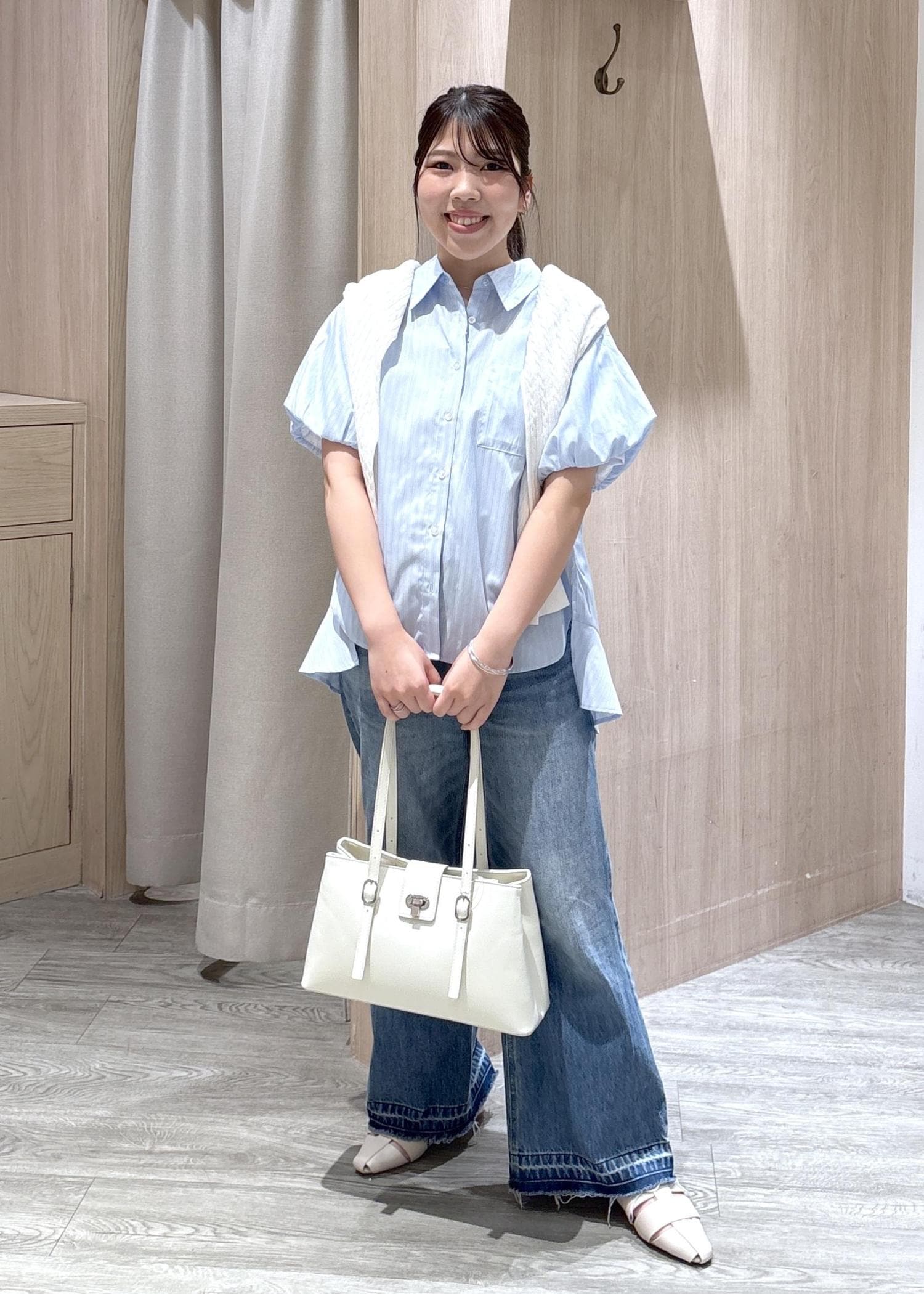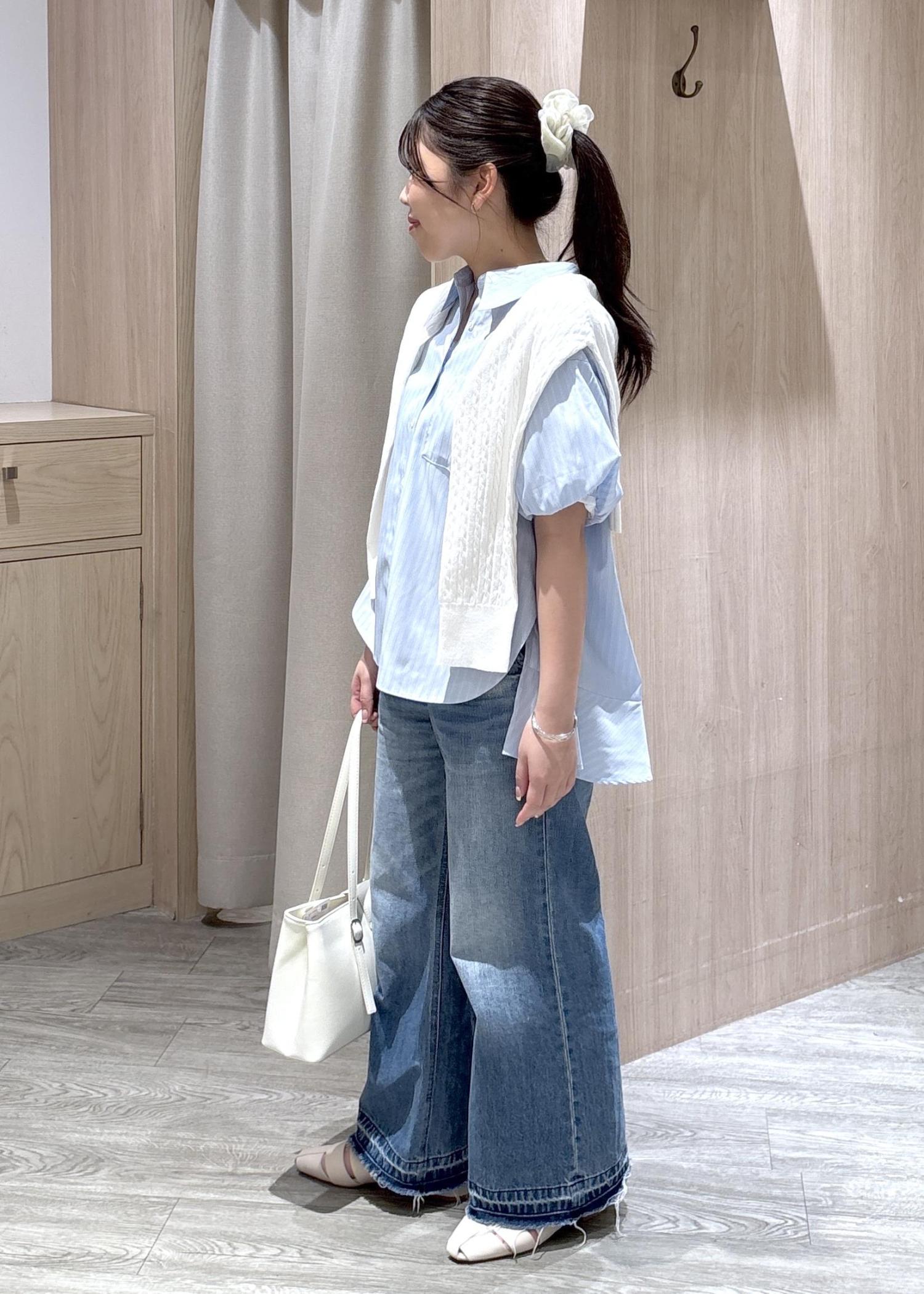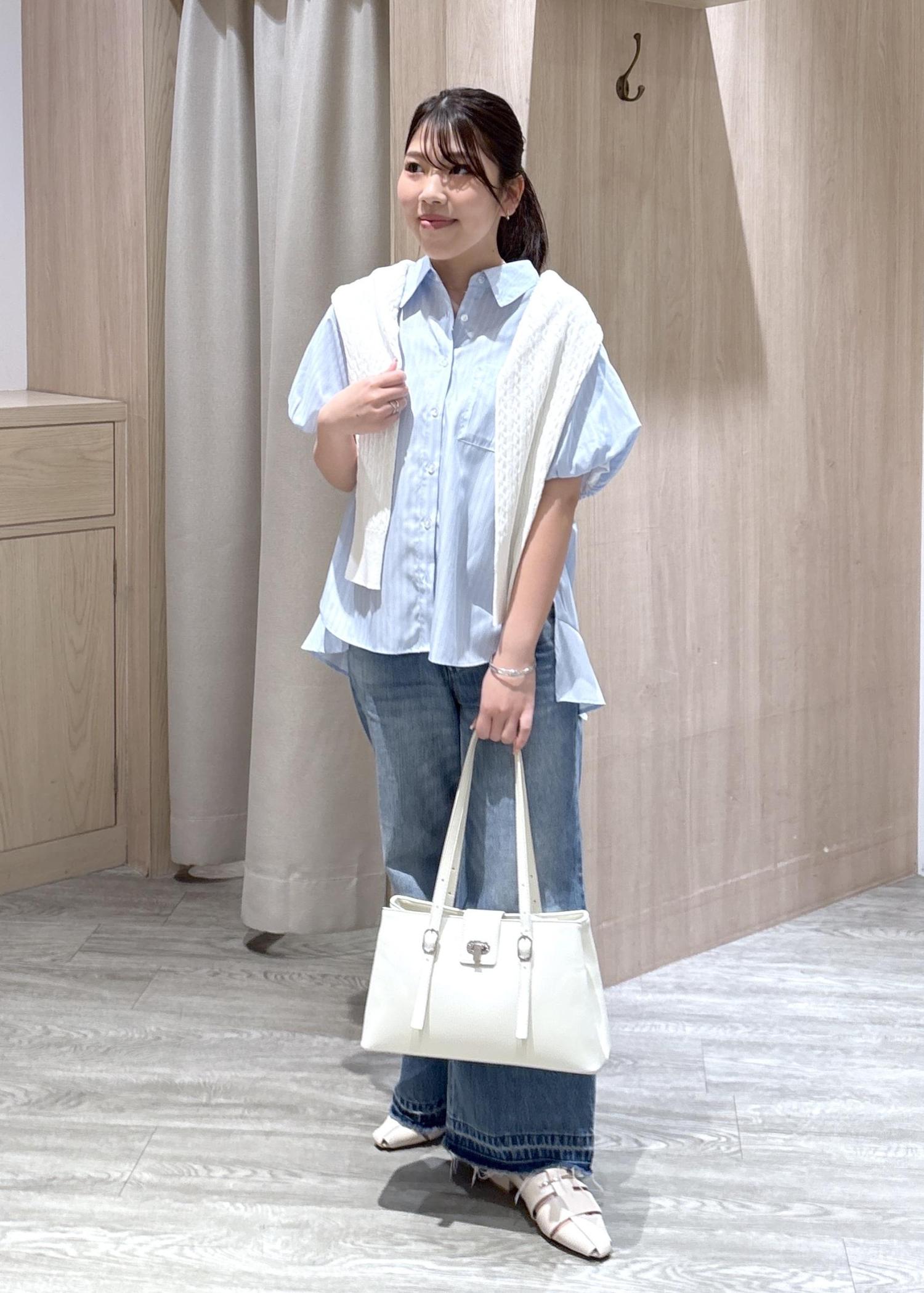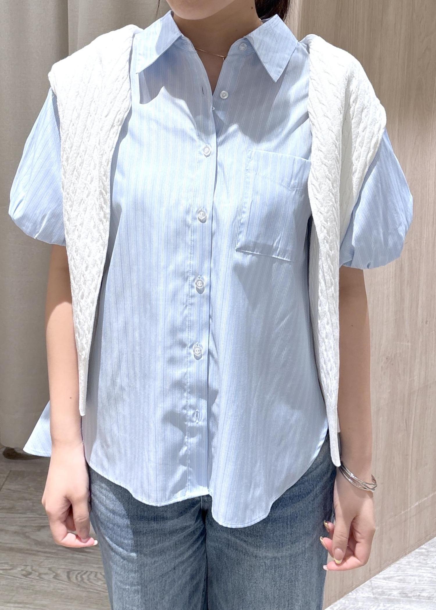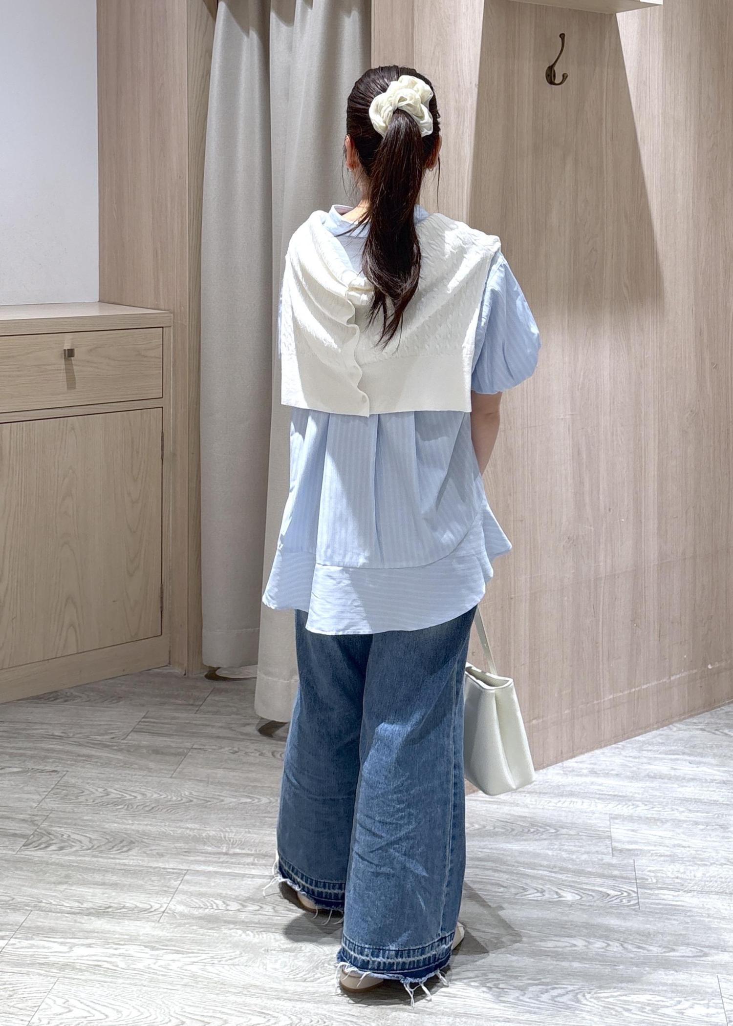VIS後ろタックフレアシャツサックス / F¥5,489レビューパフスリーブのデザインはかわいらしく、後ろの裾は長めになっているため体型カバーも叶います。夏はサラッと着やすく、シワも寄りにくくなっていますよ。