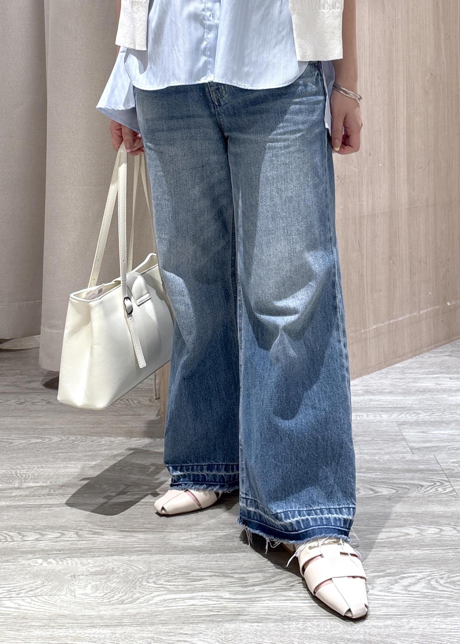 VISバギーワイドデニムパンツブルー系 / SS¥8,009レビューSSサイズで床につかない長さでしたが、ヒールを履くことが多い方はSくらい長さにゆとりがある方がオススメです。裾が色など加工されているところがポイントです。