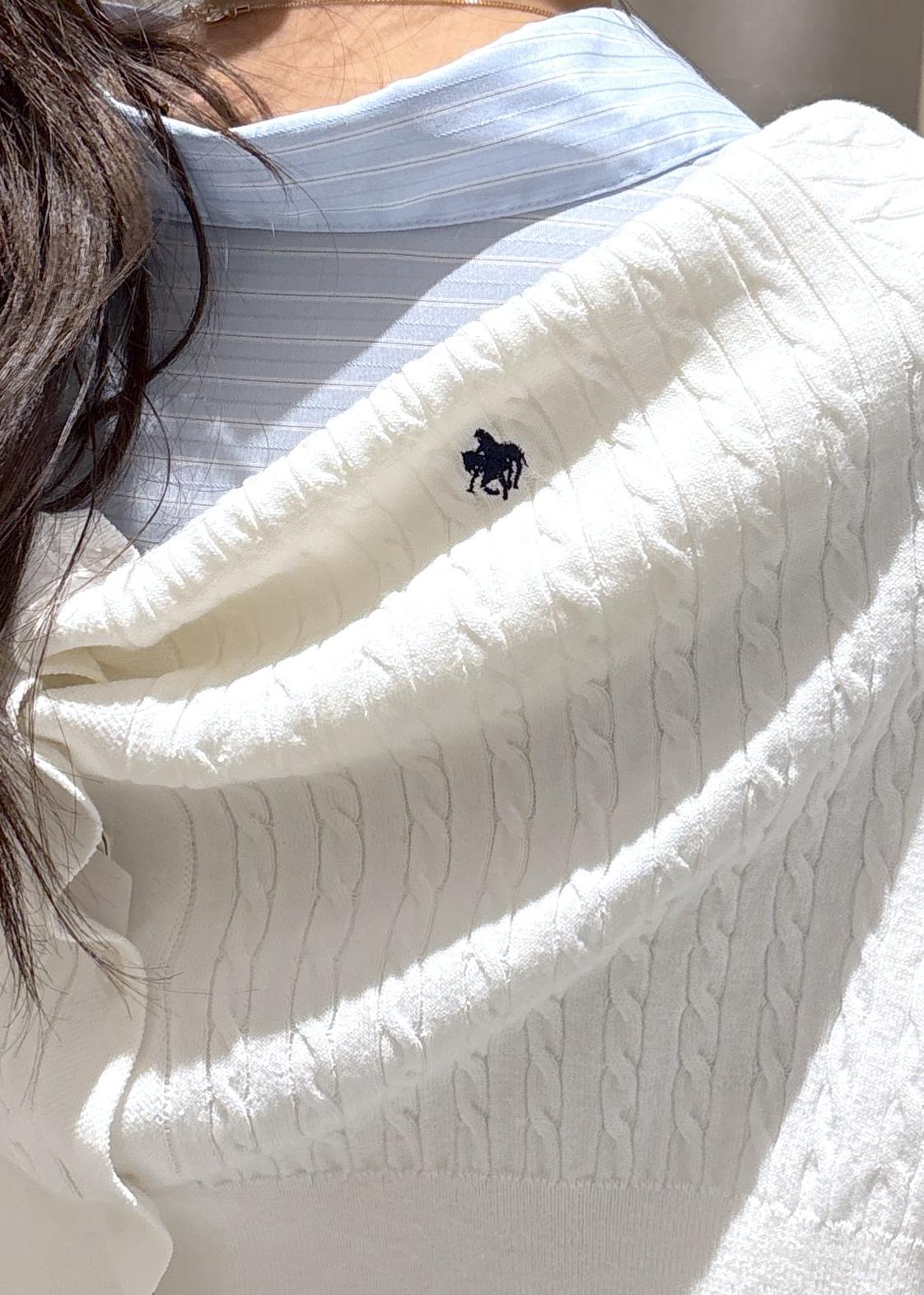 VIS【POLO BCS】VIS別注ミニケーブルノーカラーカーディガンホワイト / F¥6,930レビュー春先まで着やすい軽めの素材です。さり気ないPOLOの刺繍がポイントになっています!丈は腰が隠れるくらいの長さでスカートやワンピースにも合わせやすいですよ。