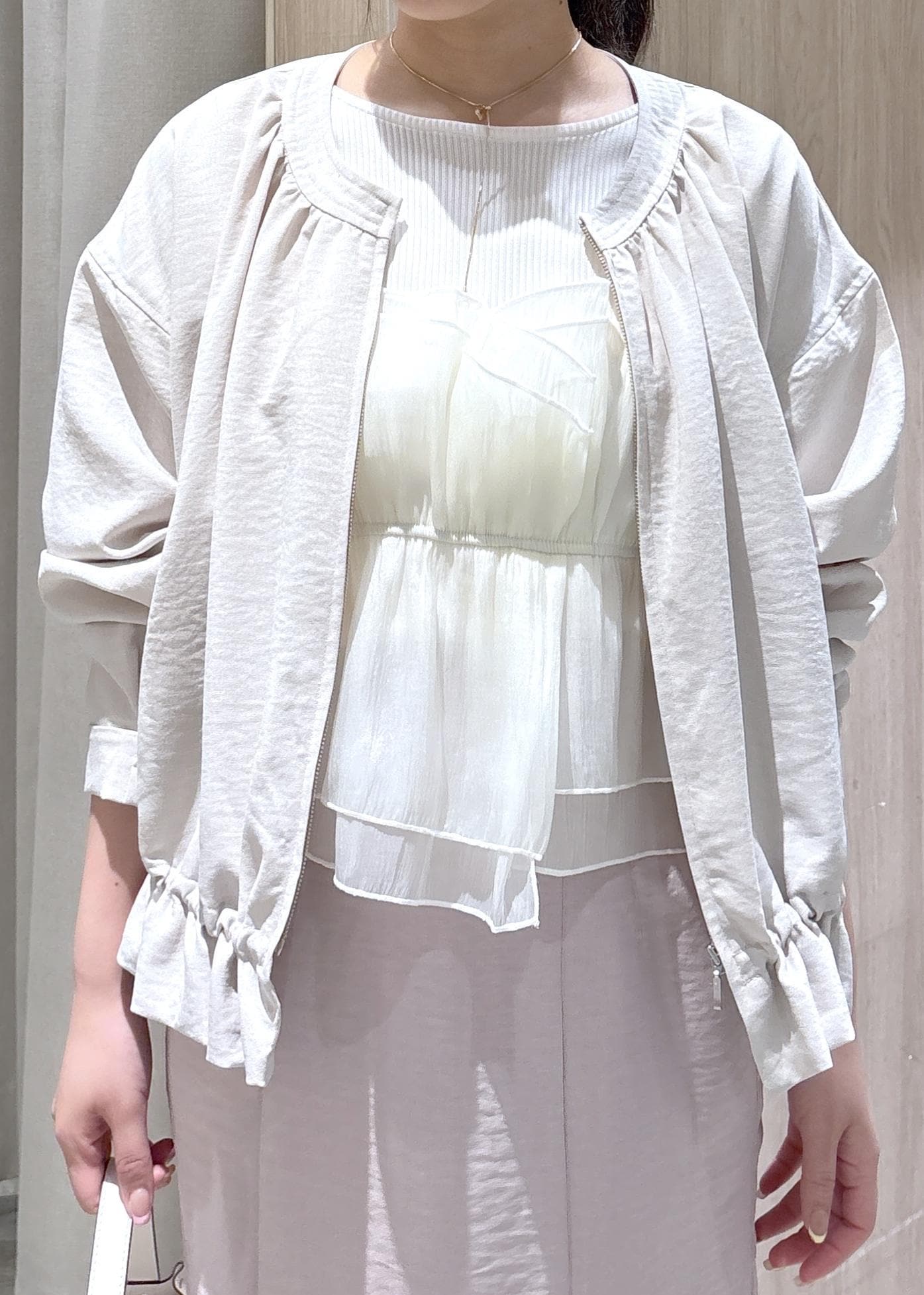 VIS美easyリネンライクジップ裾フリルブルゾン/イージーケア・接触冷感キナリ / F¥6,589レビュー接触冷感素材で真夏も軽く羽織っていただけます!裾の内側には絞りがついているためお好きな形に合わせられますよ。丈は腰が隠れるくらいの長さでワンピースやスカートにも合わせやすいです。