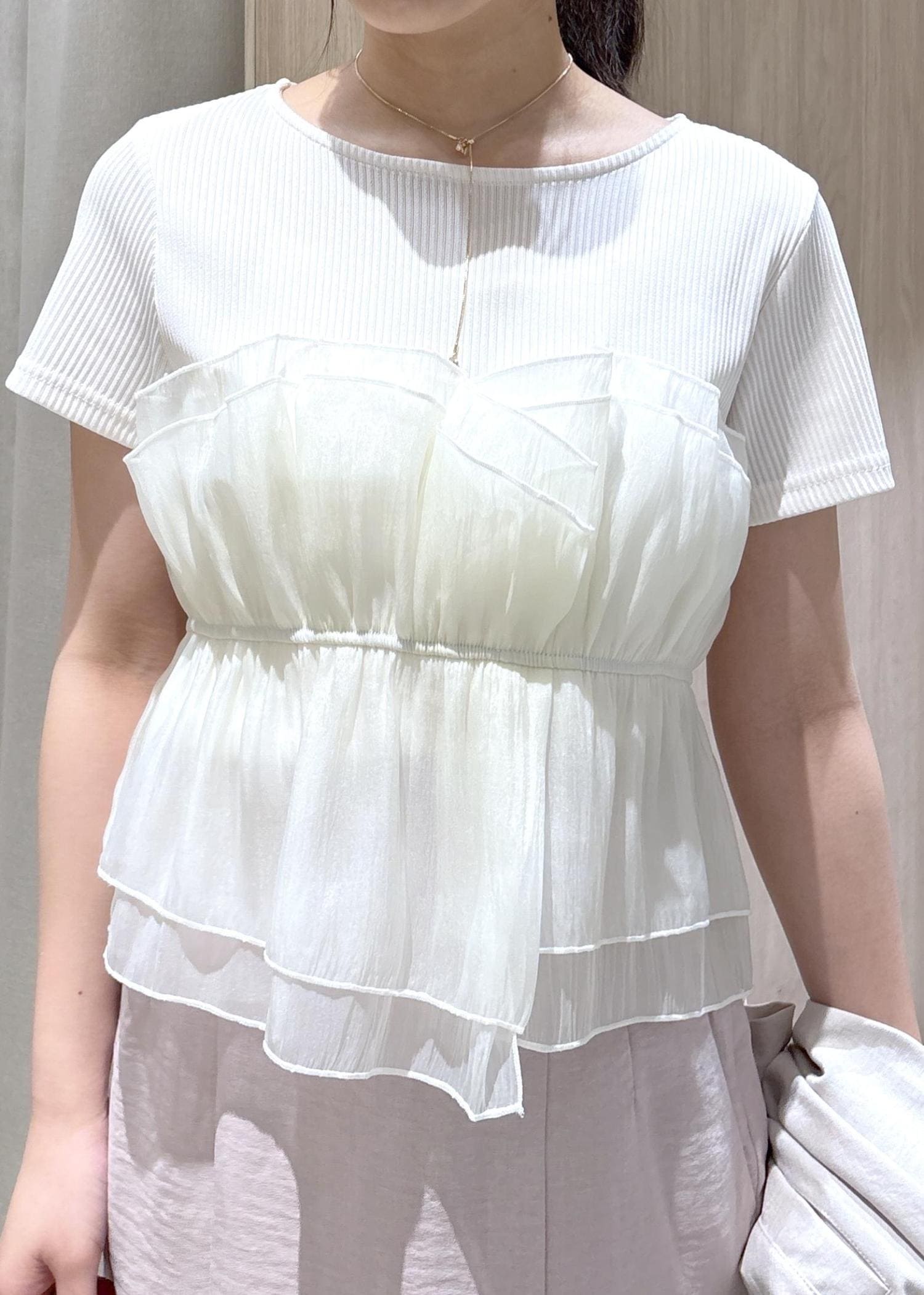 VISチェック&無地ビスチェドッキング半袖プルオーバー/イージーケアキナリ / F¥5,489レビューチュールビスチェドッキングは一枚でオシャレ見えするアイテムです!チュールのフワッとしたシルエットが華やかでかわいらしいです。