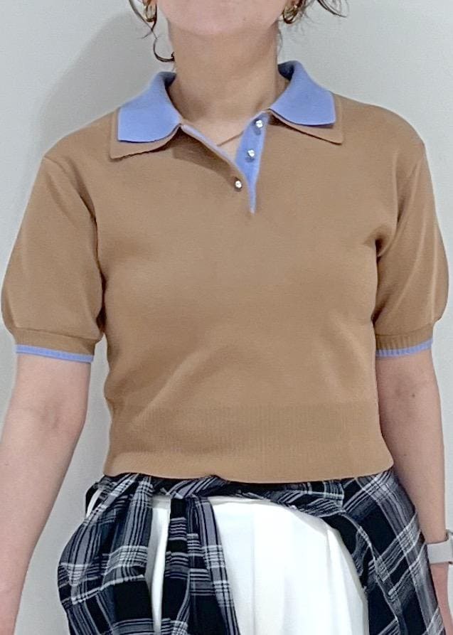 予約VISダブルカラー半袖ポロニットトップス/イージーケア・WEB限定カラーキャメル / F¥5,489レビューダブルカラーがポイントの半袖ポロニットです。
