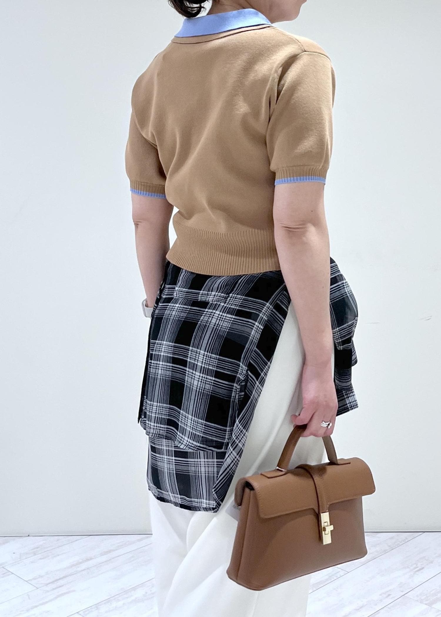 着丈はコンパクトなので、上半身がスッキリ見えボトムとのバランスも良く着られます。