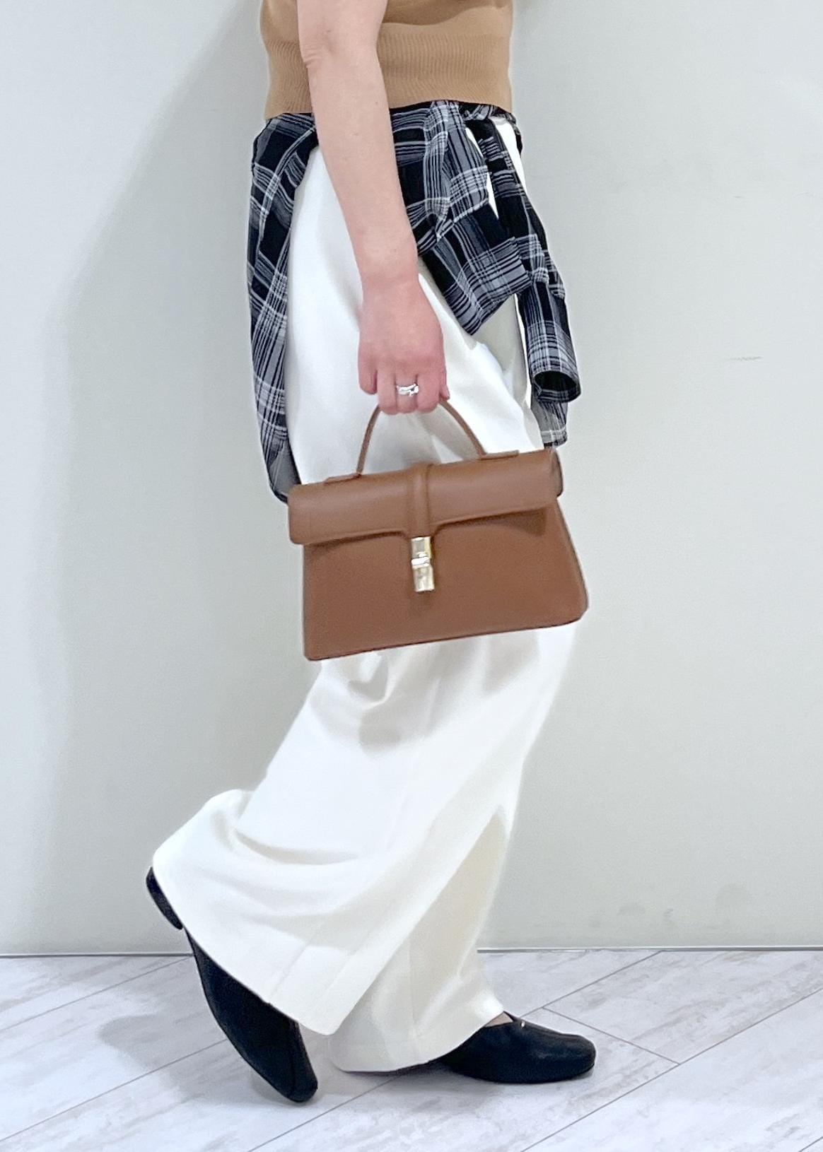 ショルダーが付いているので、斜め掛けでもワンハンドルでもお待ち頂け使いやすいです。 -