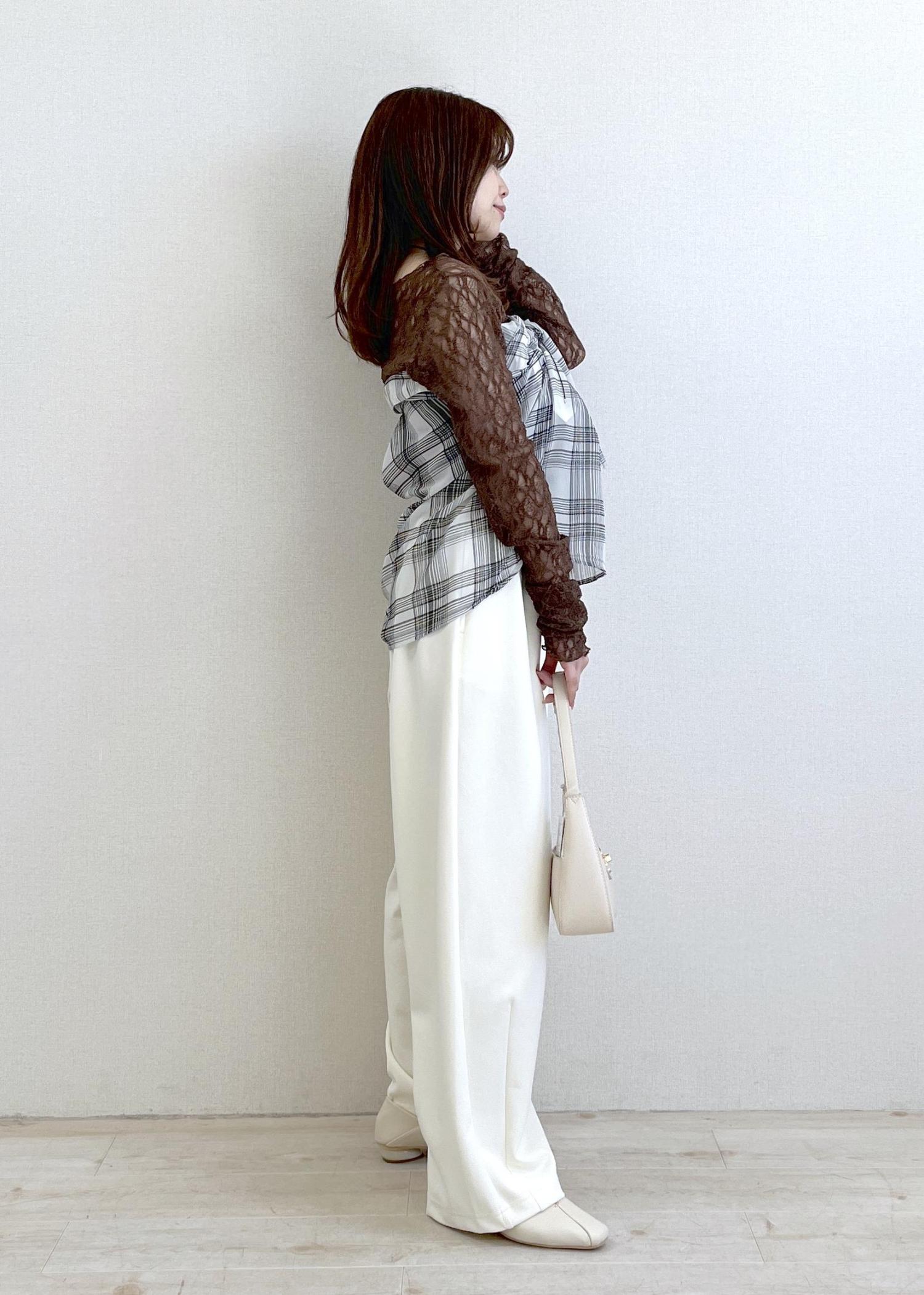 透け感は強いのでインナーは、同色か黒などがおすすめです。 -