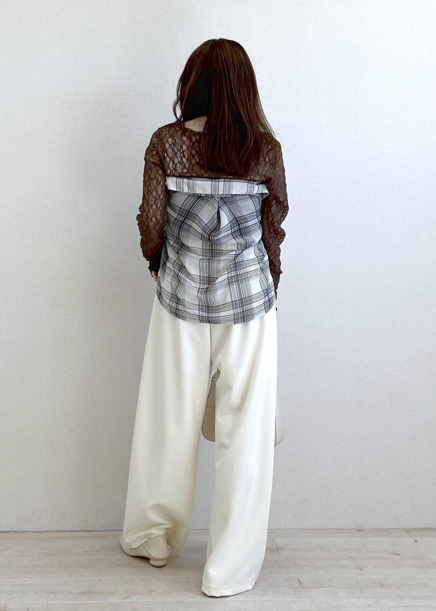VISチェック&シアーオーバーシャツホワイト系 / F¥5,489レビュー全体的にゆったりめのサイズで、着丈は後ろがヒップが隠れるくらいです。