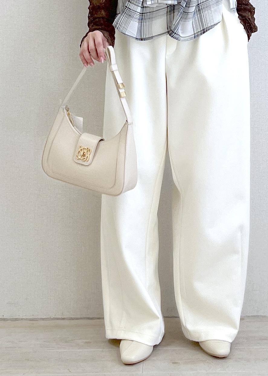 てろっとした柔らかい素材なので落ち感があり、少し避けるのでタンクトップやロンT合わせがおすすめ。 -