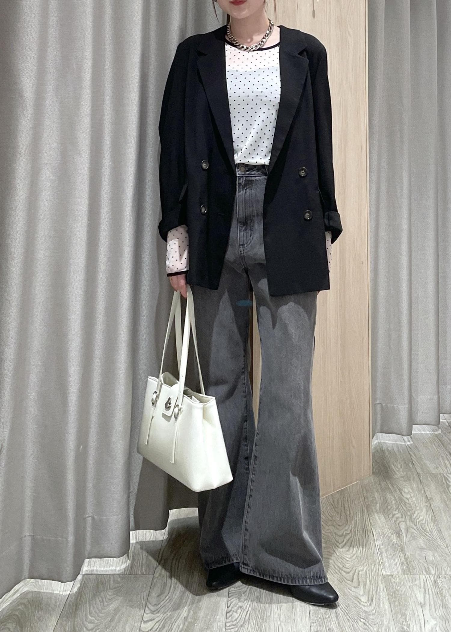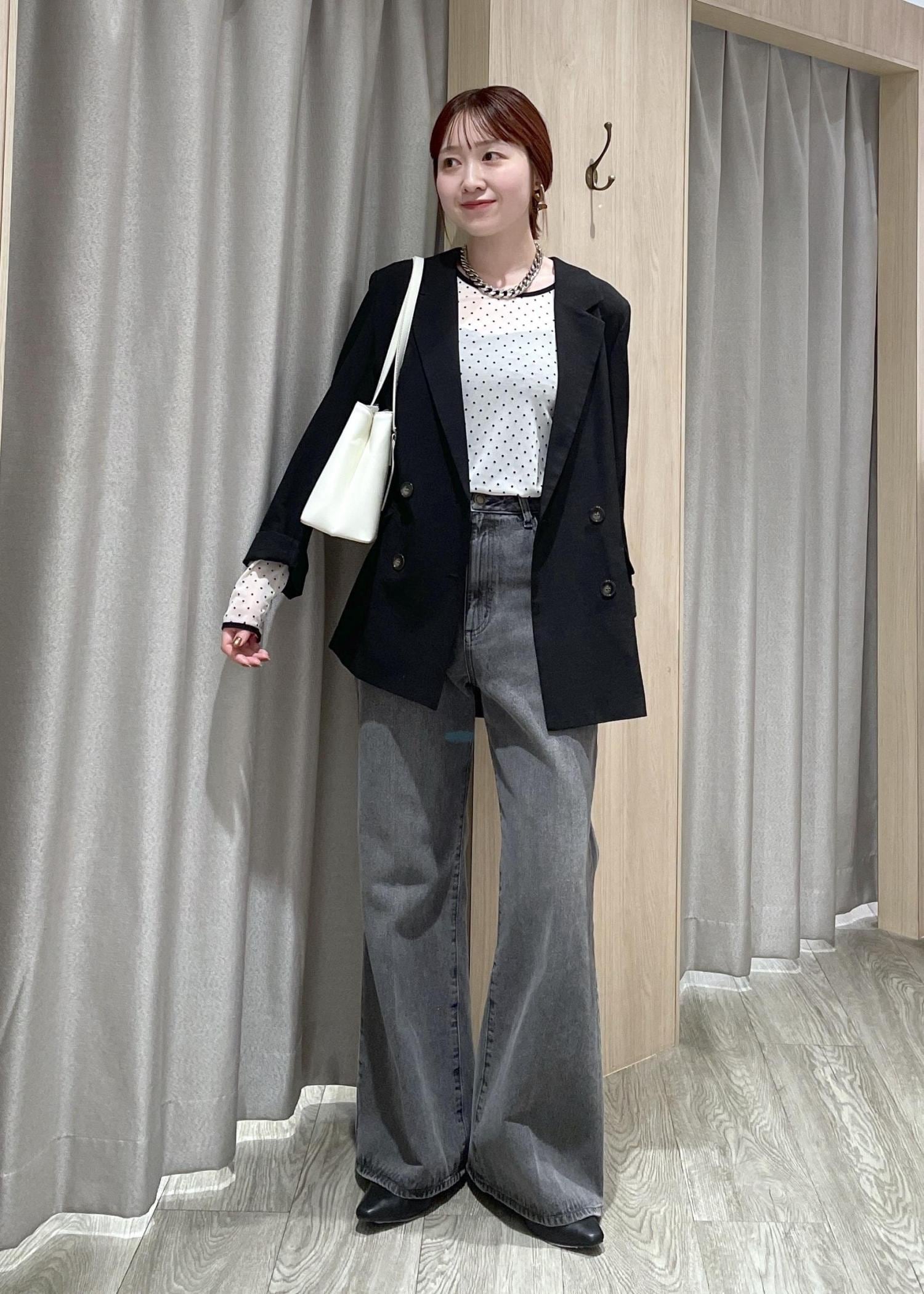 VISカラーフレアデニムパンツスミクロ / M¥8,899レビュー身長159cm/Mサイズ着用、程よくゆとりがありリラックス感あるサイズ感でした◎Sサイズだとウエストと着丈はジャストでしっかり細身で履けました!股上が高めなのでウエスト周りもスッキリと、センタープレス入りでスタイルアップ効果も期待できます!