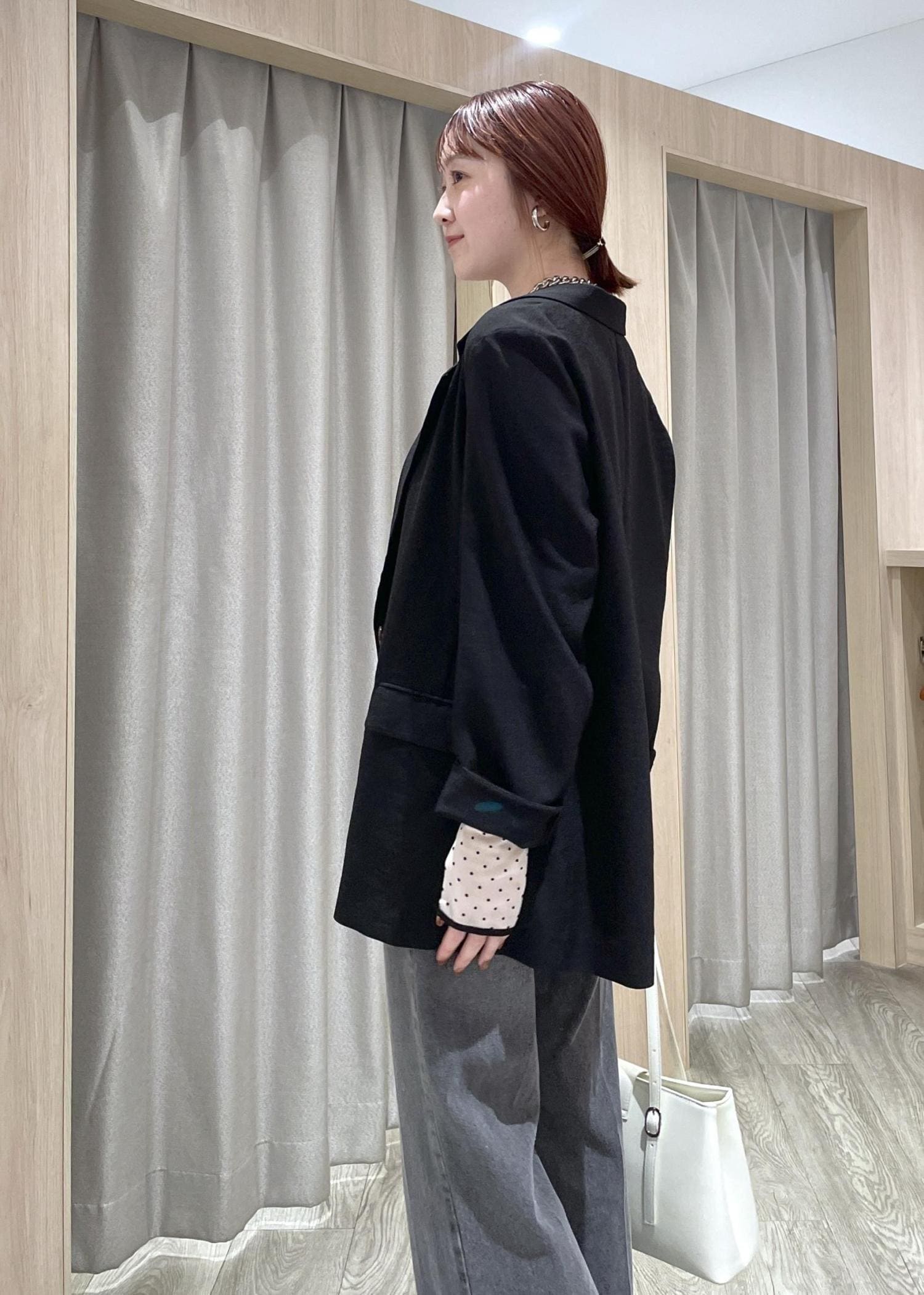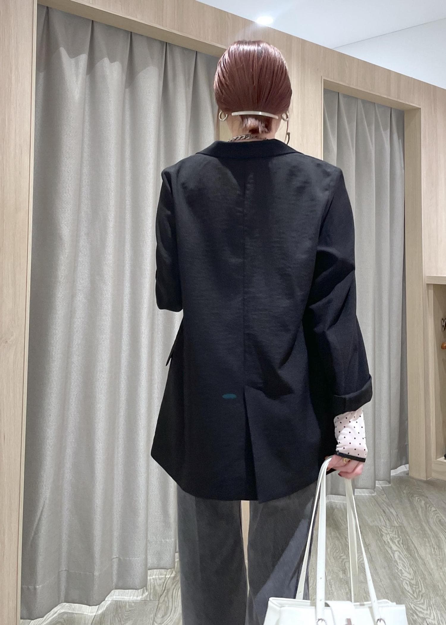 VIS美easyリネンライクテーラードジャケット/イージーケア・接触冷感・セットアップ対応ブラック / M¥7,909レビュー身長159cm/Mサイズ着用。ヒップがしっかりと隠れる安心感のある着丈。オーバーサイズでは無いのでジャケットのかっちり感もありつつ、普段使いもしやすいリラックス感もあるサイズです◎