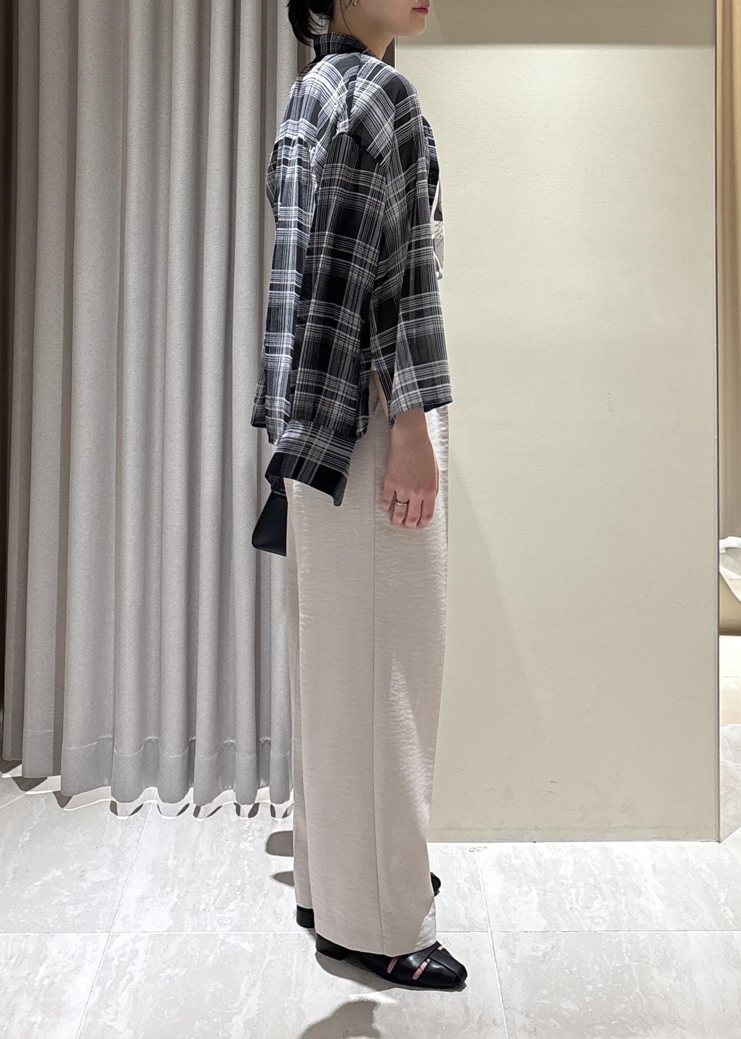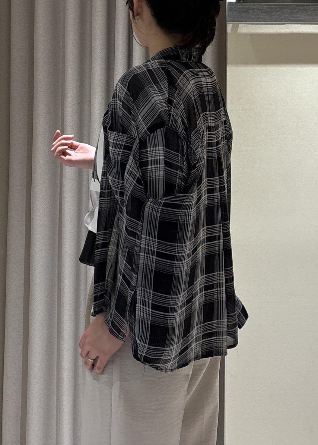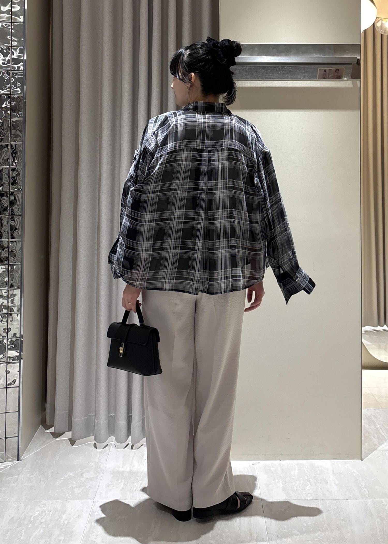 シアー素材ですが、チェック柄で透け感ありすぎず一枚でも着やすいです!