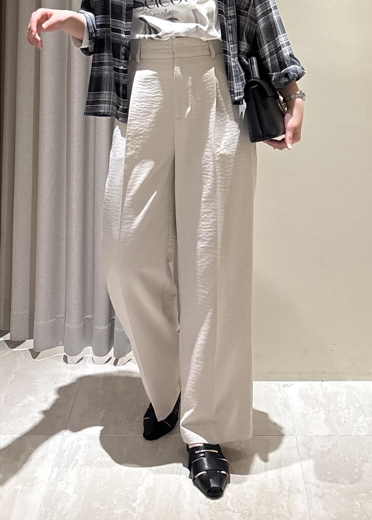 タックが入っていて腰回り綺麗にカバー、ワイドすぎないのでお仕事から休日まで着回しやすいです◎ -