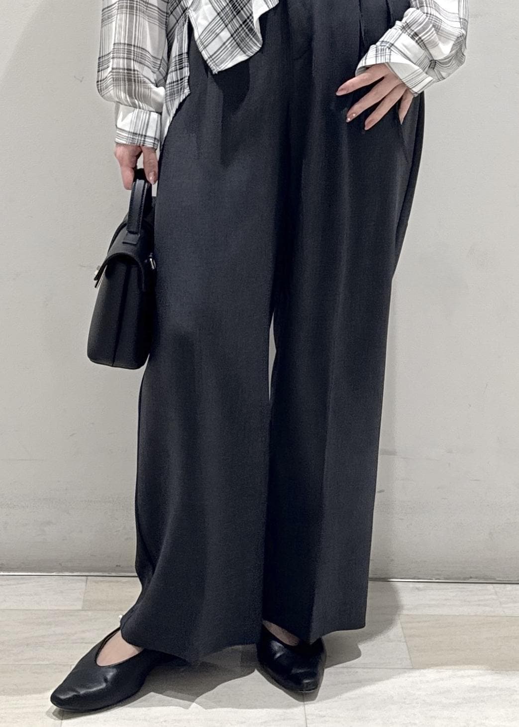 サラッと涼しいワイドパンツを合わせた