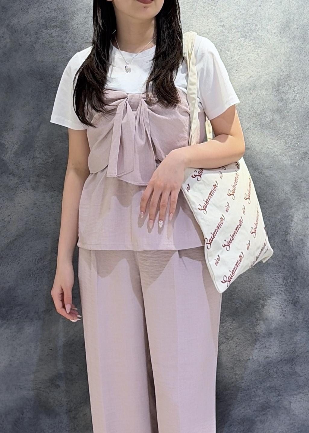 VIS美easyリネンライクリボンビスチェトップス/イージーケア・接触冷感・セットアップ対応ピンク / F¥5,489レビュー身長160cmで腰骨が隠れる丈感