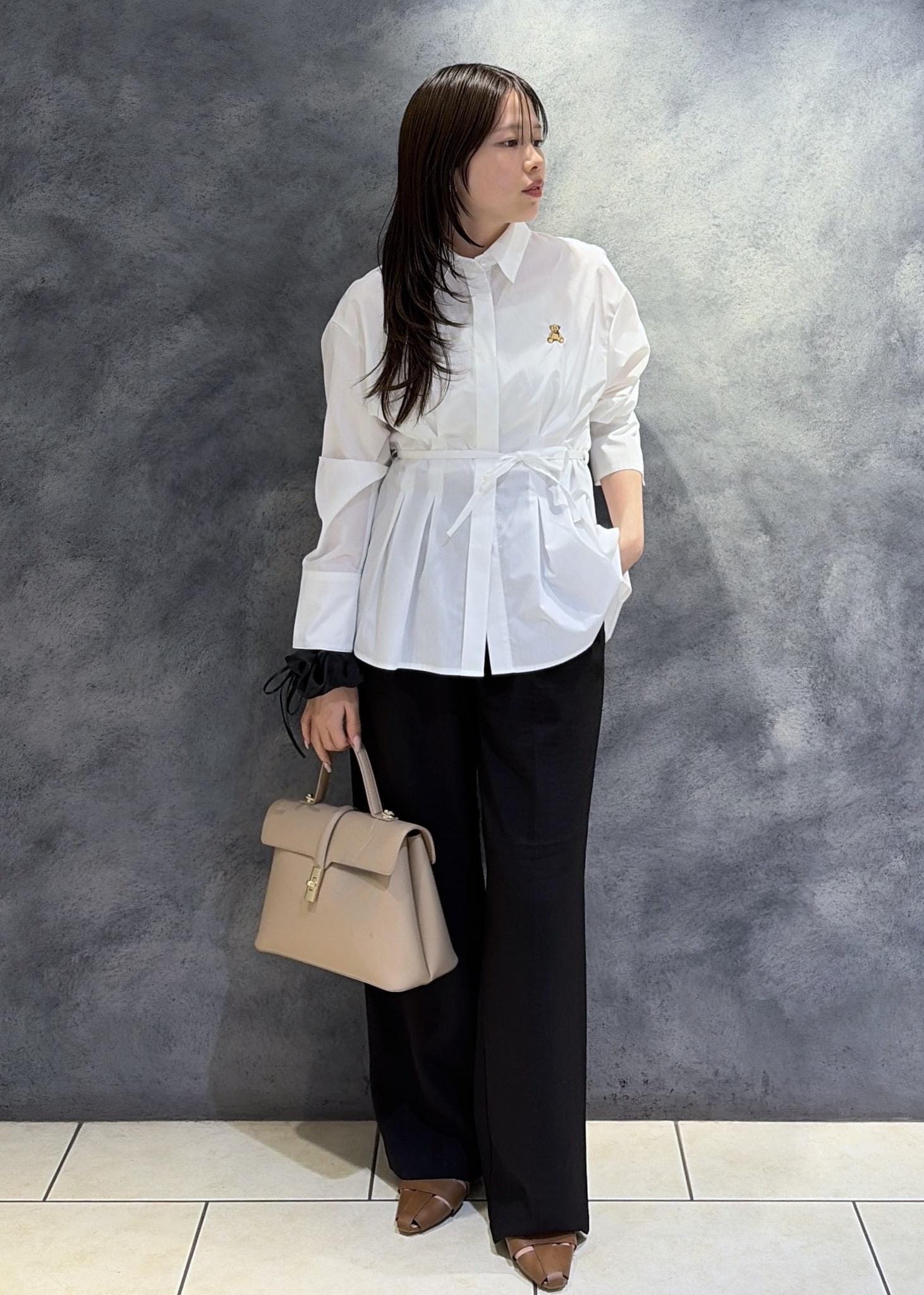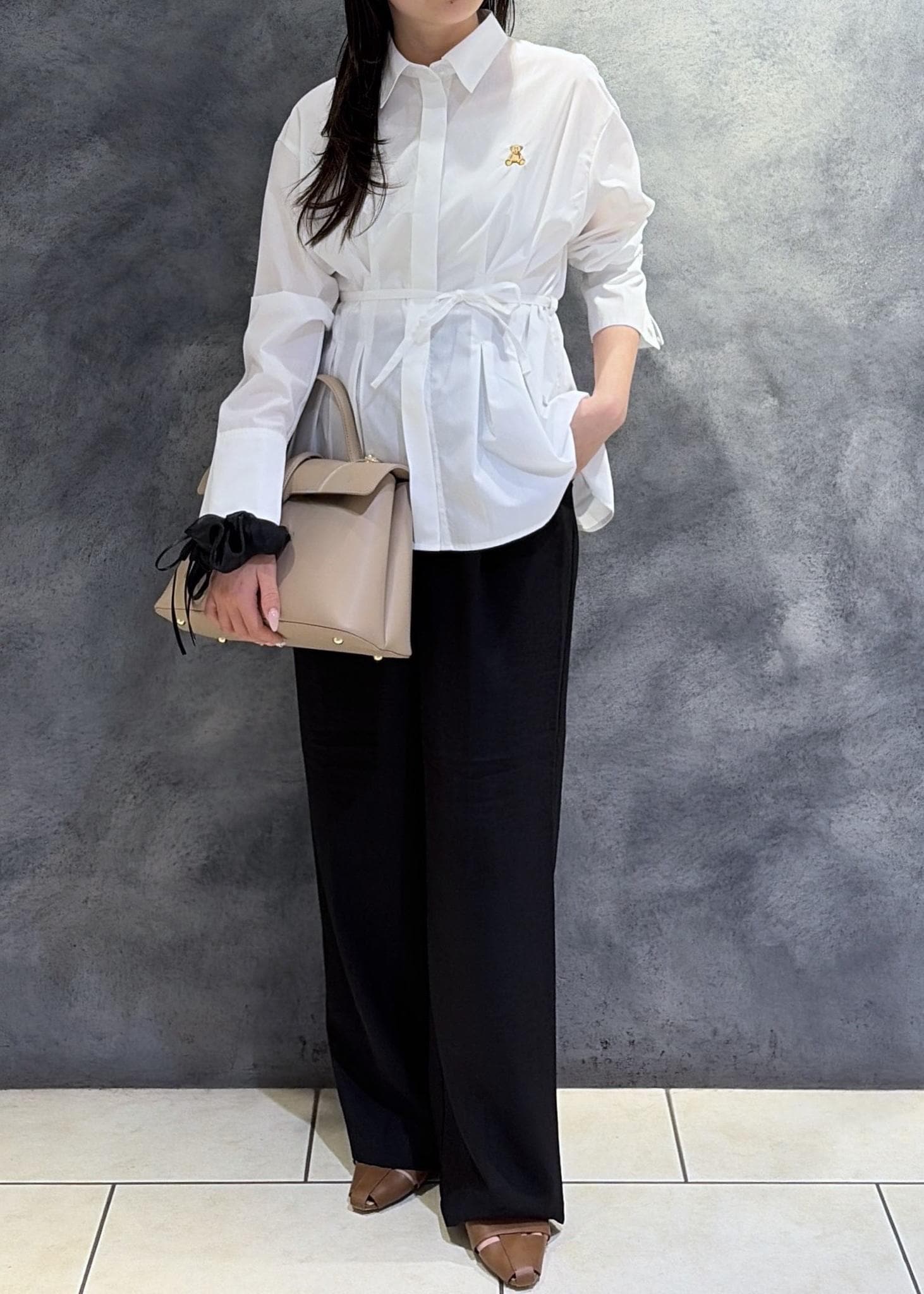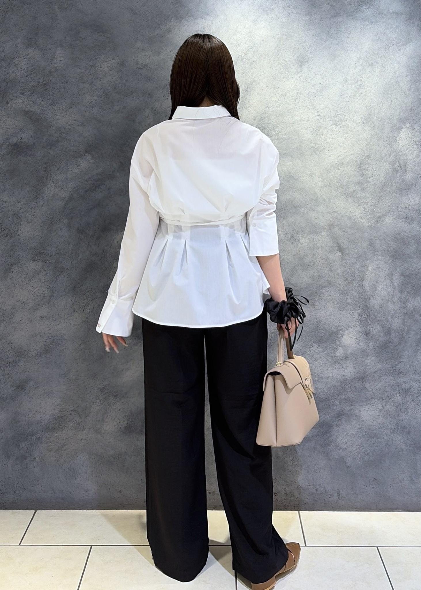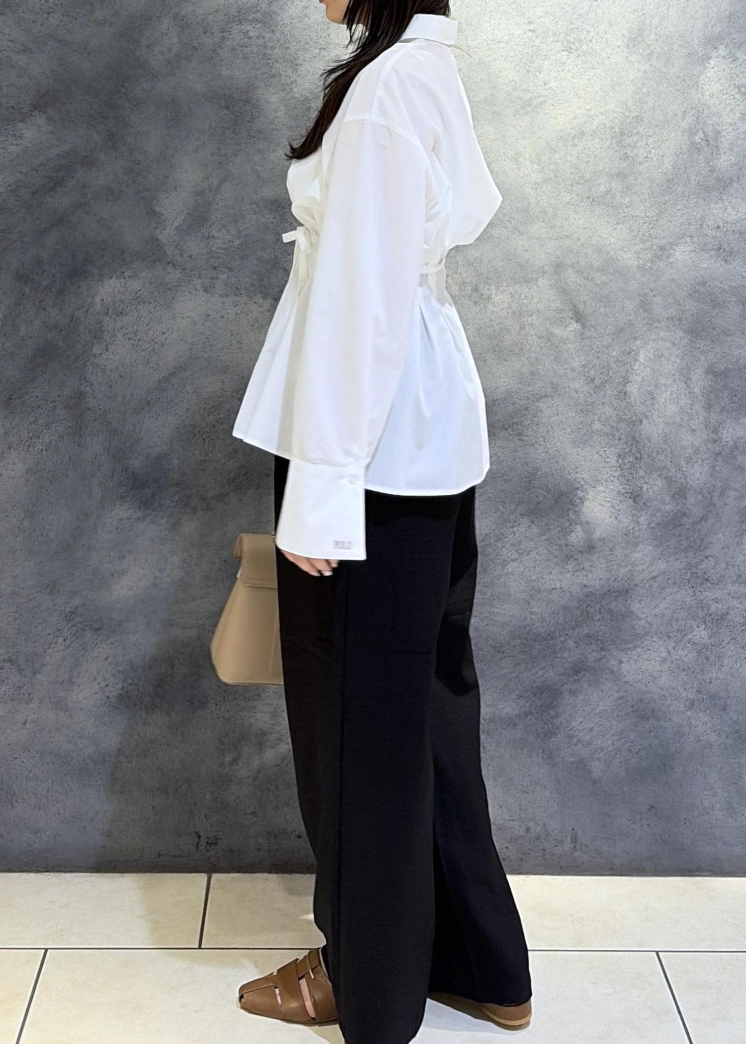 ゆったりとしたシルエットですが落ち感が綺麗なのでオンオフ兼用いただけます。 -
