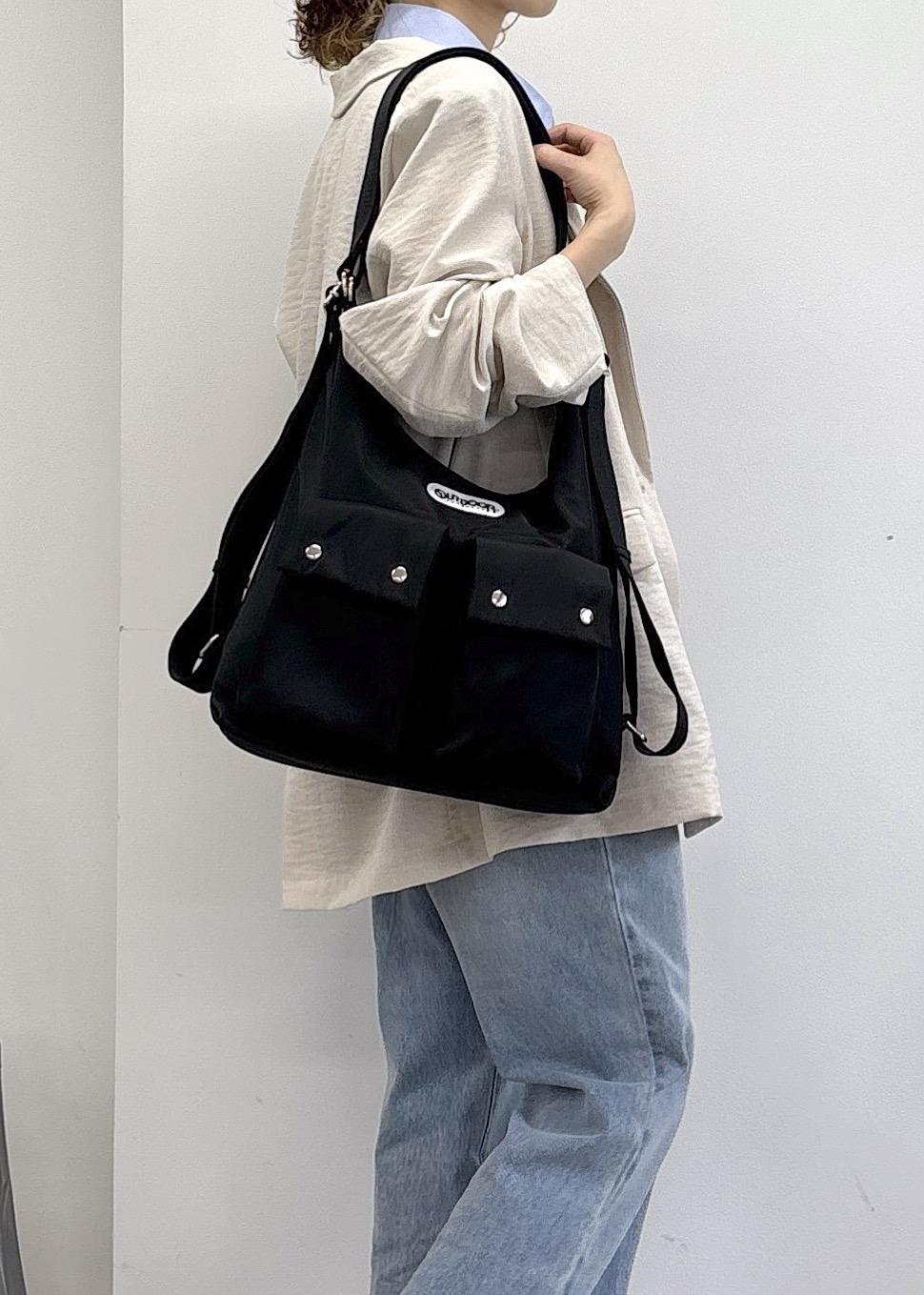 VIS【OUTDOOR PRODUCTS】VIS別注マルチウェイショルダーバッグ/トートバッグ/リュックブラック / F¥9,680レビューOUTDOOR PRODUCTS × VIS別注の新作バック♪毎シーズン大好評の中、今回こちらのバックはマルチウェイ!ショルダー、トート、リュックに持ち方を変えられる優秀なデザイン♪個人的にはリュックがシルエットも可愛くてオススメです◎500mlのペットボトルはもちろん、長財布やポーチとたくさん入る+ぽけっとも充実していて安心♪