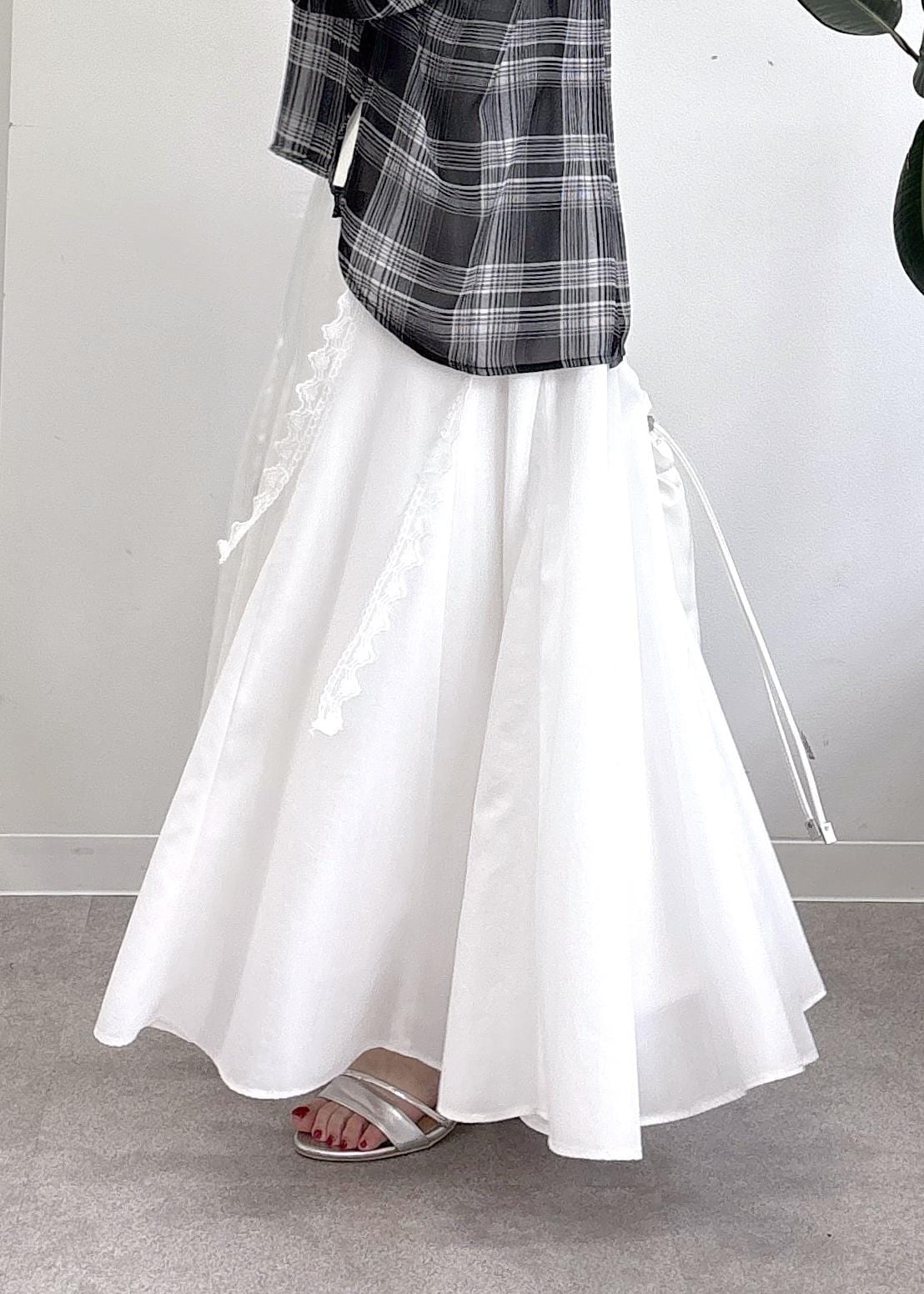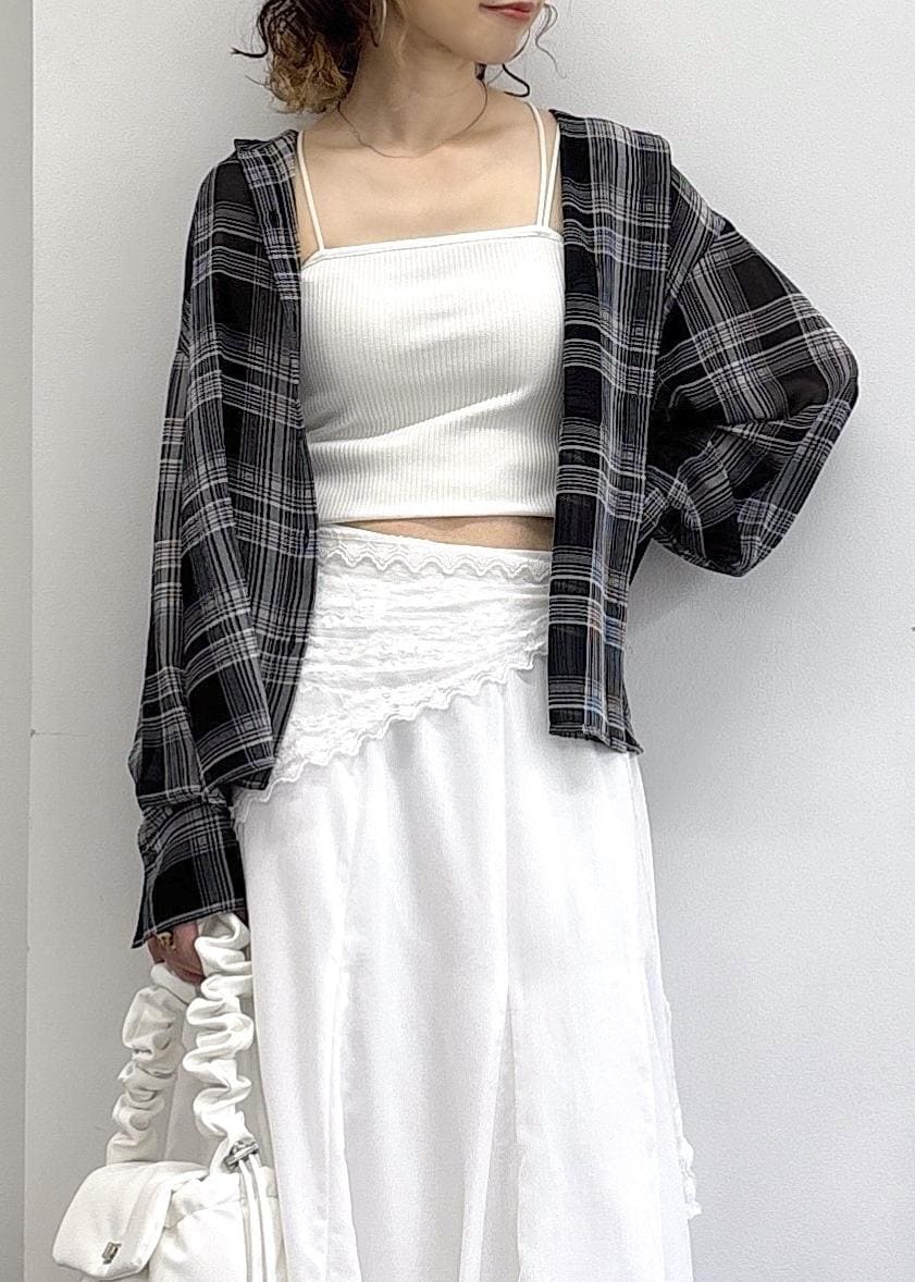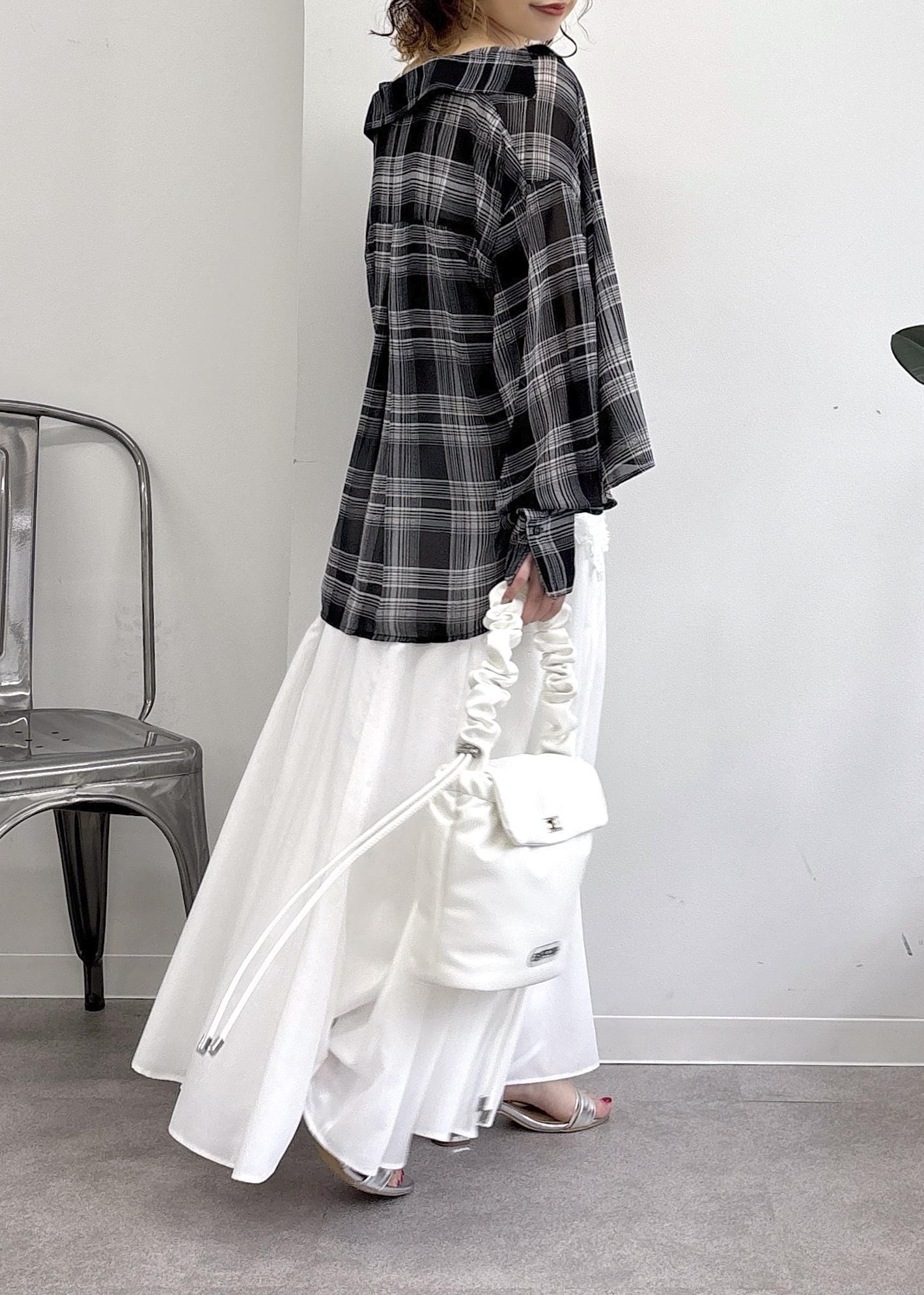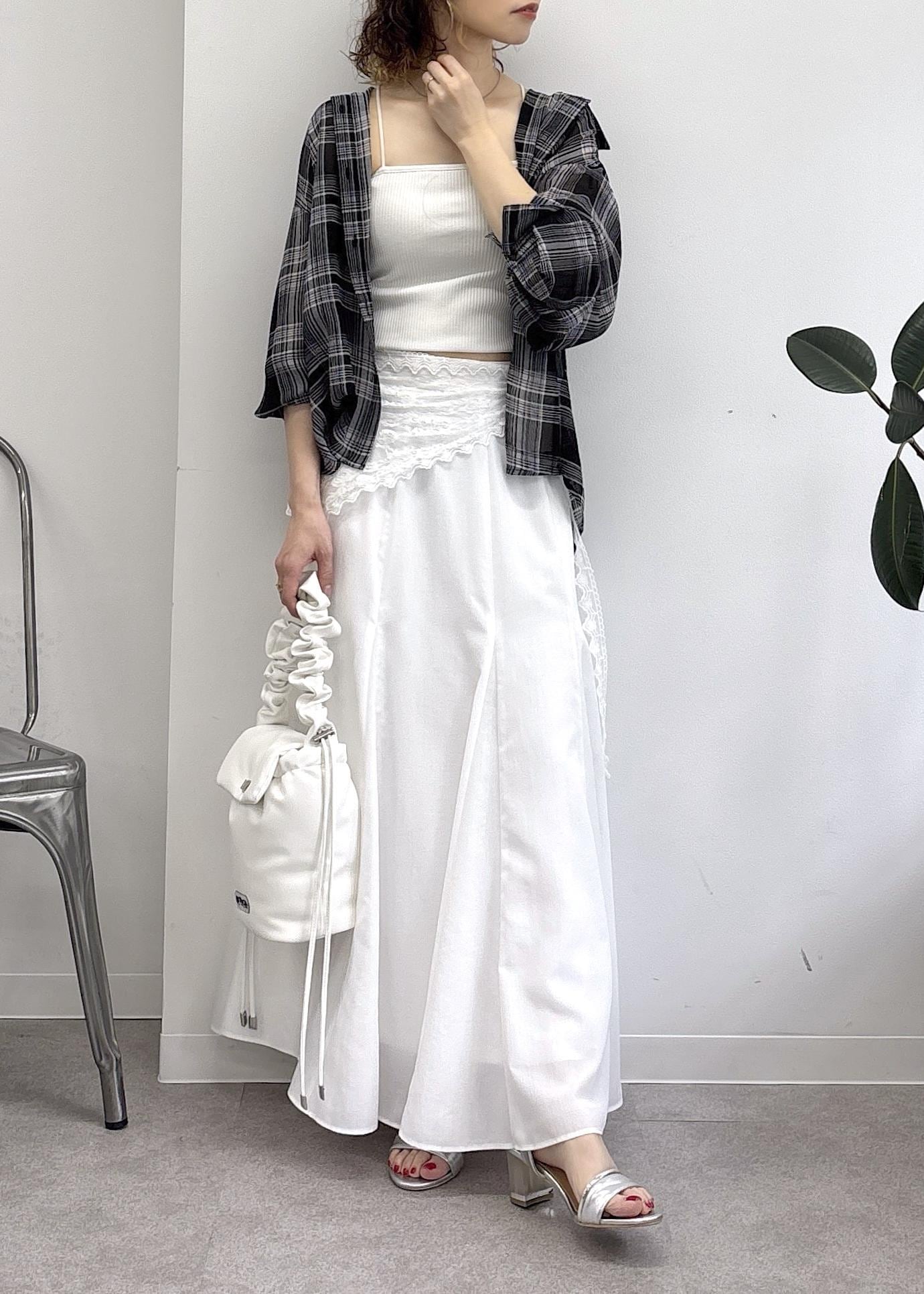 軽くてさらっと羽織れるチェックシャツは今から夏の冷房対策まで長く着回せる優秀アイテム♪今回はホワイトのインナーとフレアスカートで大人カジュアルにまとめました◎今年らしく腰にレーススカーフをさりげなくポイントにしました。春夏のお出かけコーデにぴったりです。