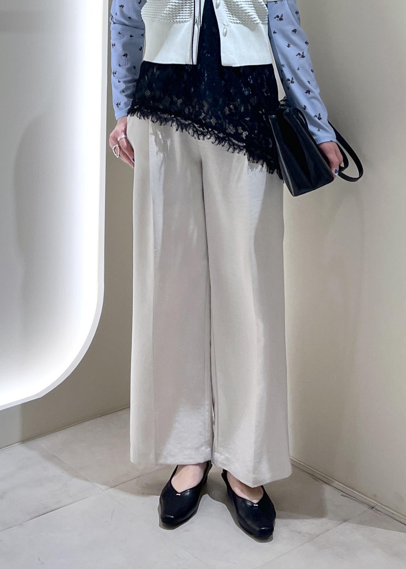 さらっとした着心地でシワにもなりにくくイージーケアの優れもの♪171cm/Lサイズ着用で足首がすこし見える丈感で、太もも周りなどはゆったり着れます。シンプルなので着回し力も抜群です。 -