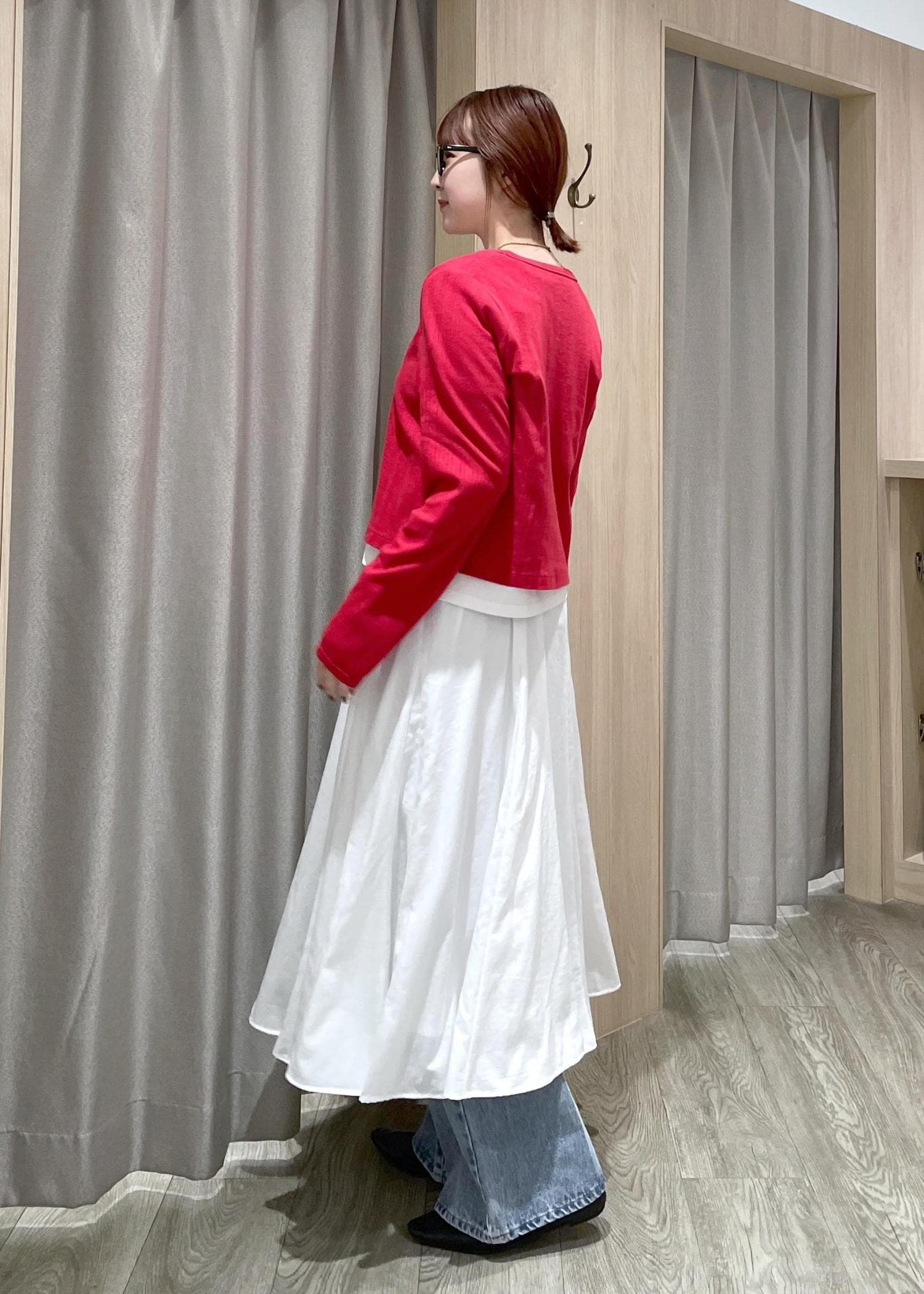 スカート×デニムのレイヤード♡