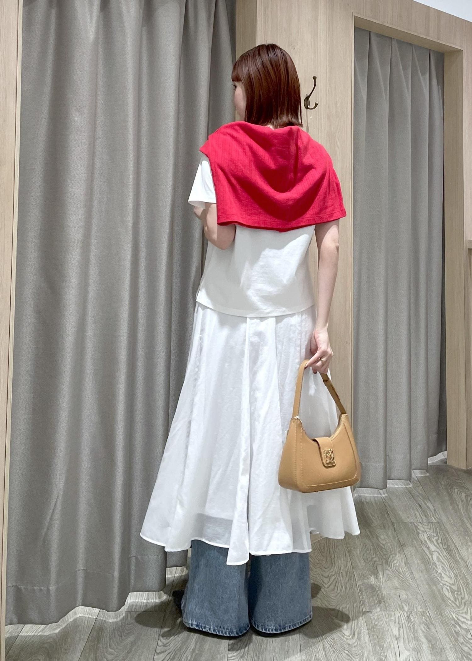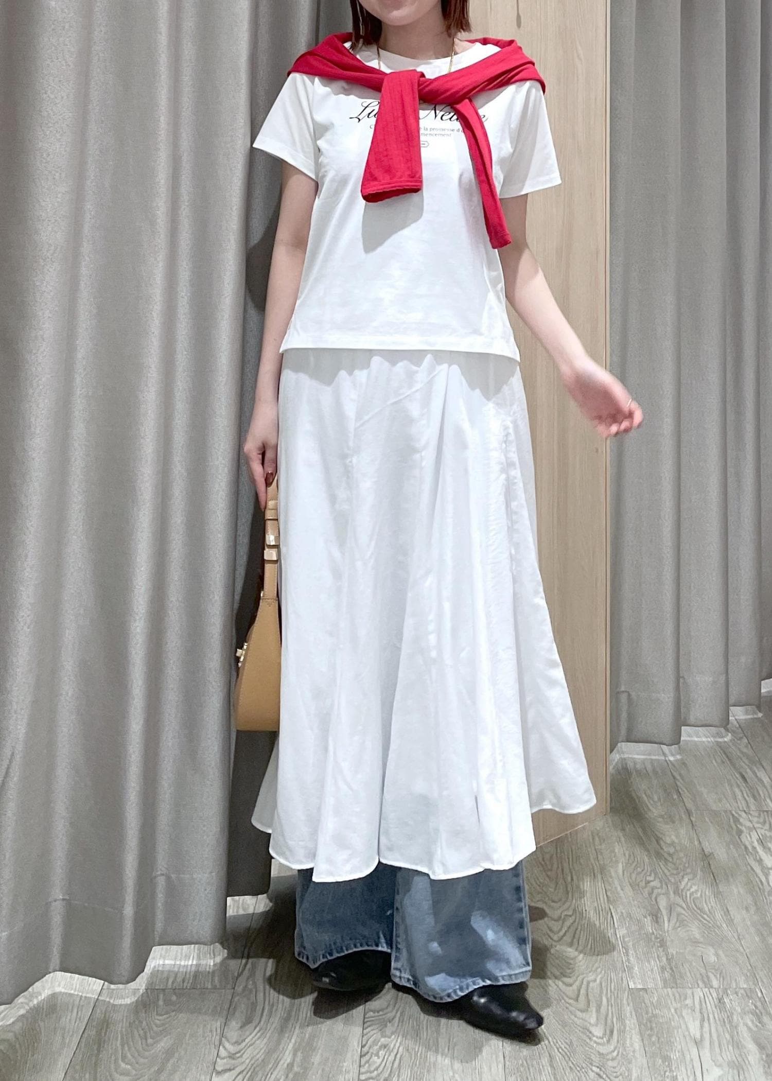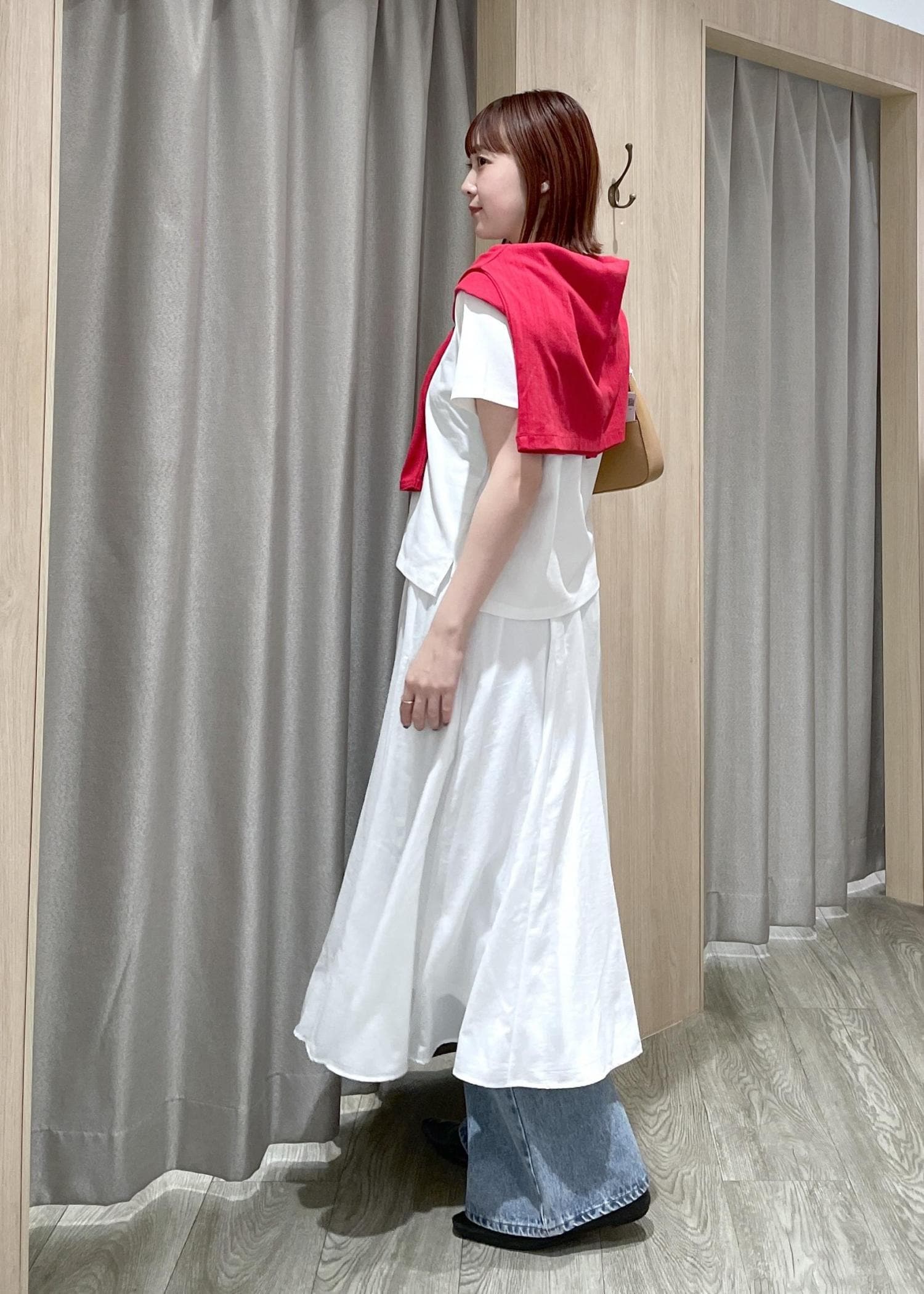 身長159cmで足首がしっかり見える着丈、ふわっと広がるシルエットですが膨張せずスッキリ見せてくれます。裏地付きなので着用カラーも透け感は気にならなかったです◎