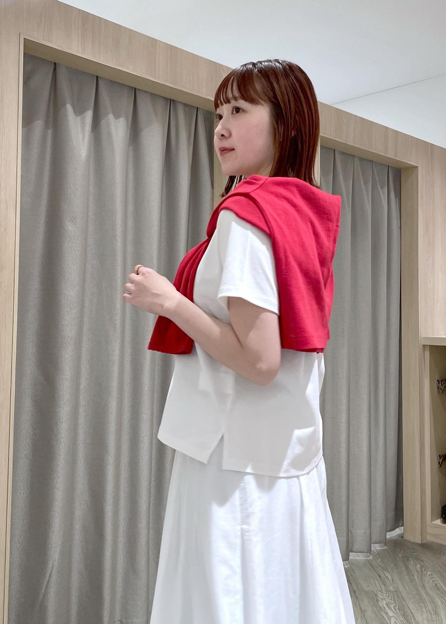 コンパクトなサイズ感ですがボディラインを拾うほどでは無く◎1枚でもインナー使いしてもスッキリと着用できます!