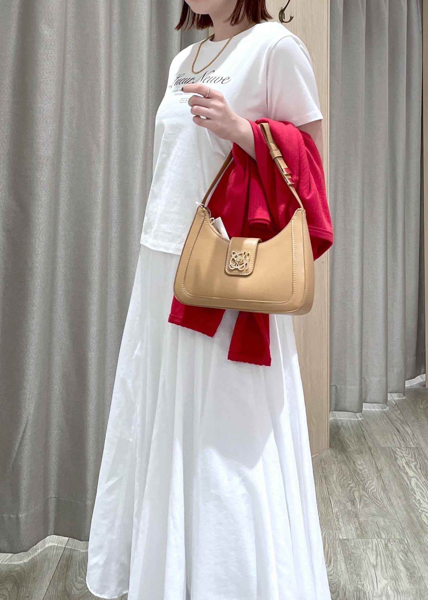 シンプルながらゴールド金具が高見えします❤︎コンパクトな見た目ですが、マチはしっかりあるので見た目以上の収納力です!開口が広めなので出し入れもしやすいです!