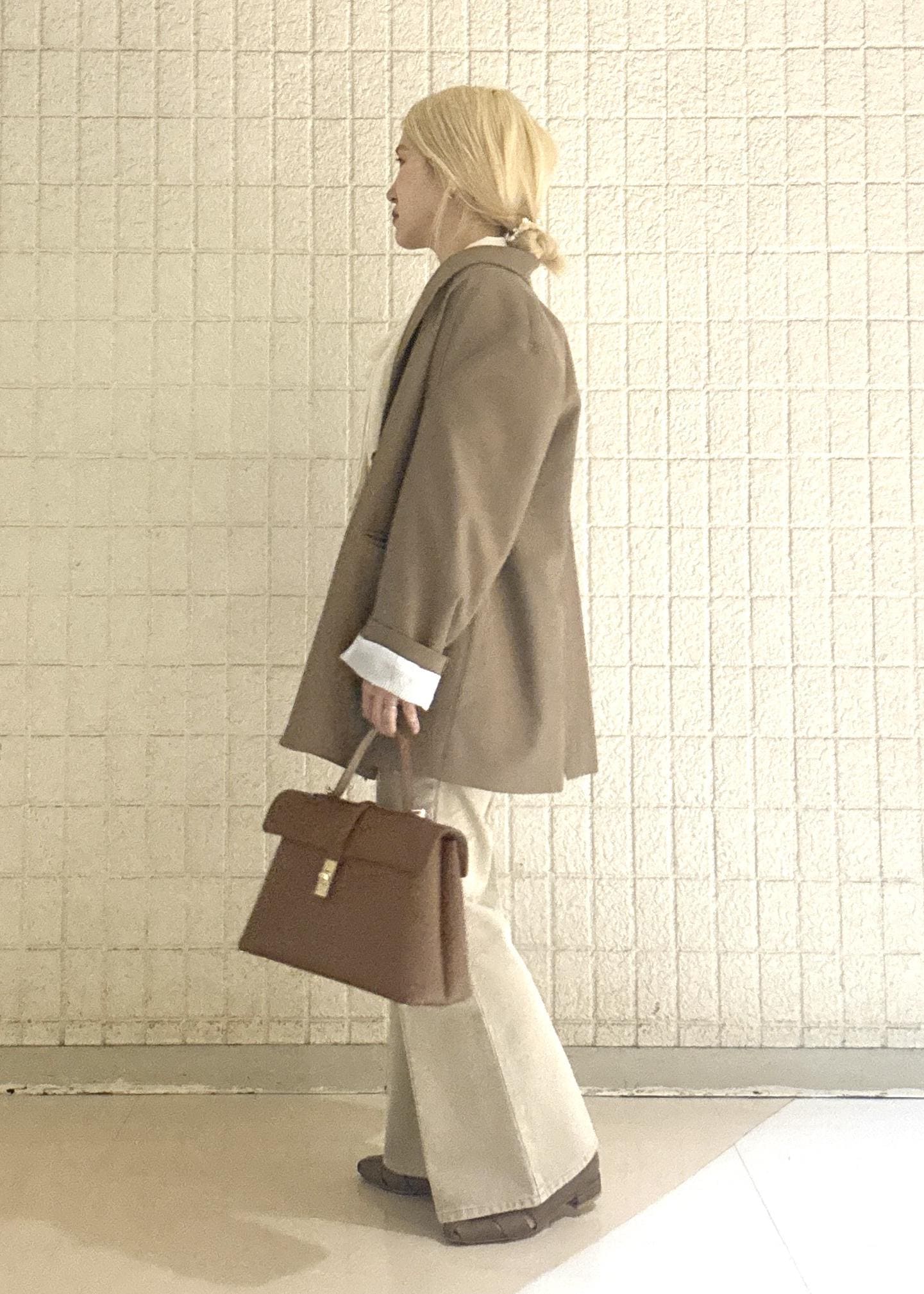 甘めなブラウスでクラシカルなマニッシュコーデ