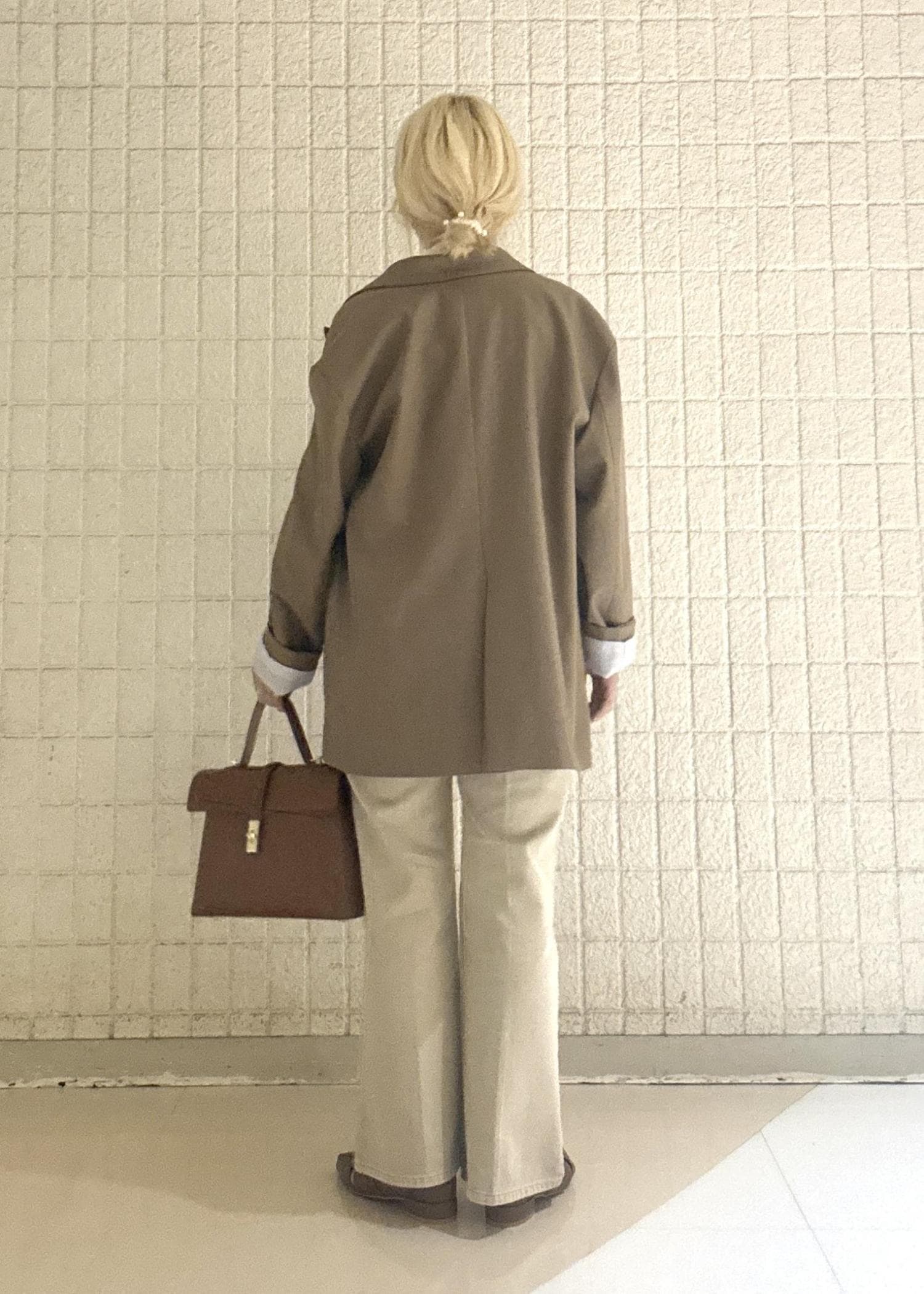フレアデニムとオーバーシルエットのジャケットで少しマニッシュに。