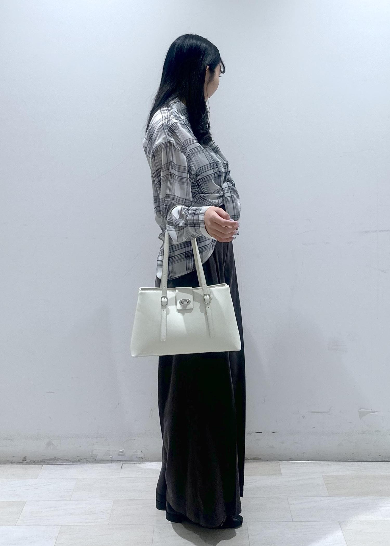 VIS2層ロングハンドルバッグキナリ / F¥6,919レビューロングハンドルと横長シルエットが持つだけで洗練された印象に。