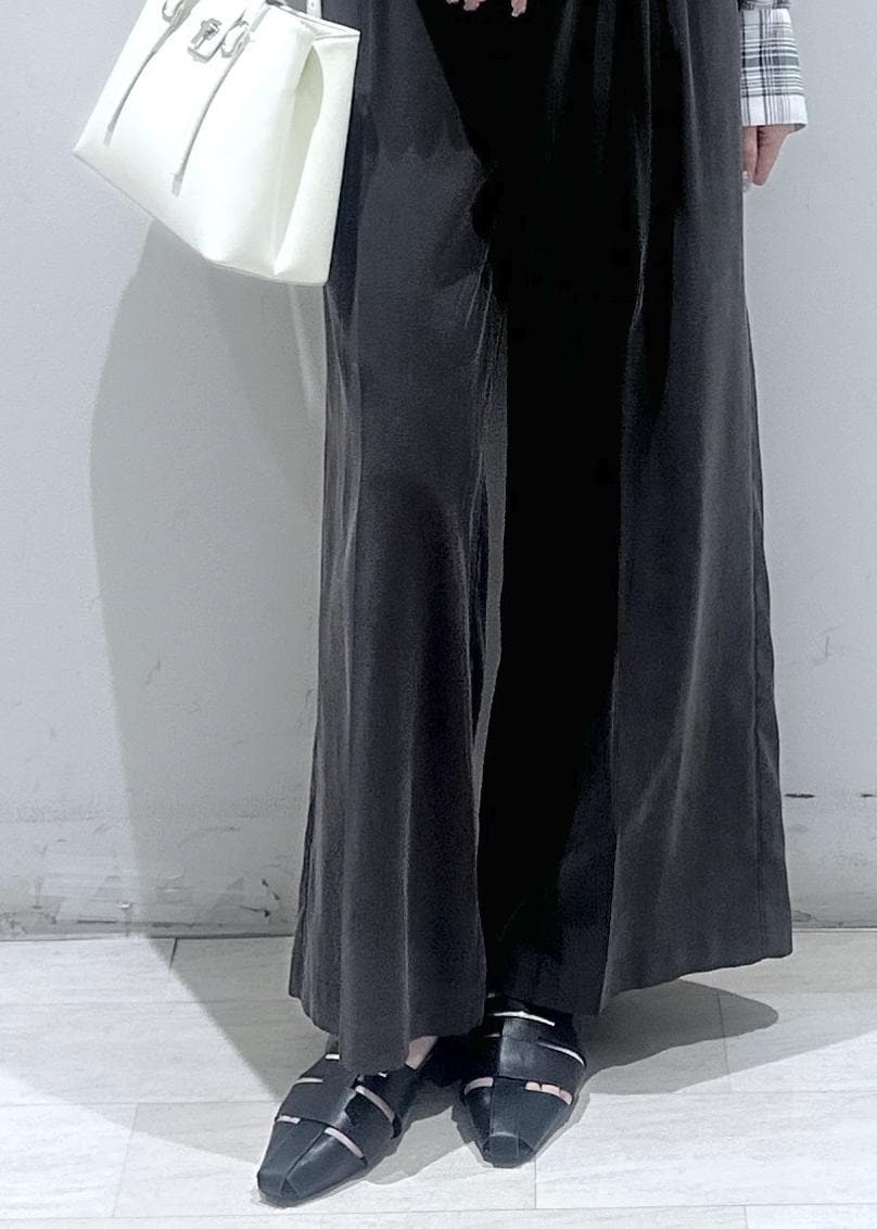 腰周りはすっきりしつつ裾に幅を持たせた落ち感のあるワイドシルエットのパンツです。