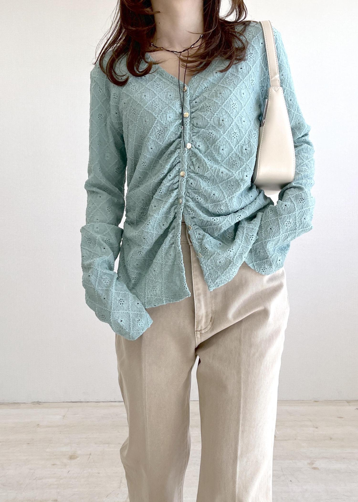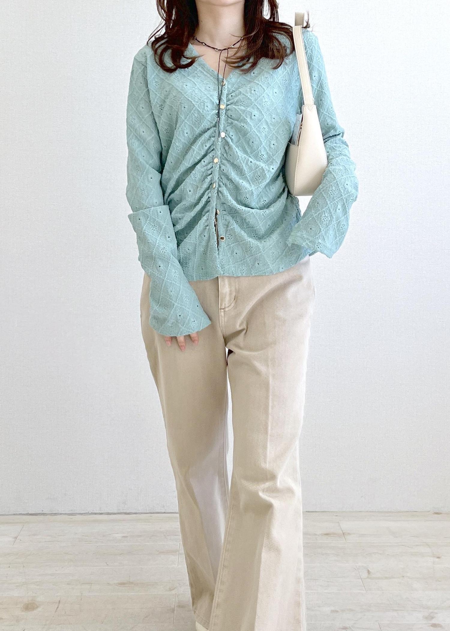 NEW!VISフラワージャガードカットカーディガン/2WAY・イージーケアグリーン系 / F¥5,489レビュー体にぴったりしすぎないサイズ感です。