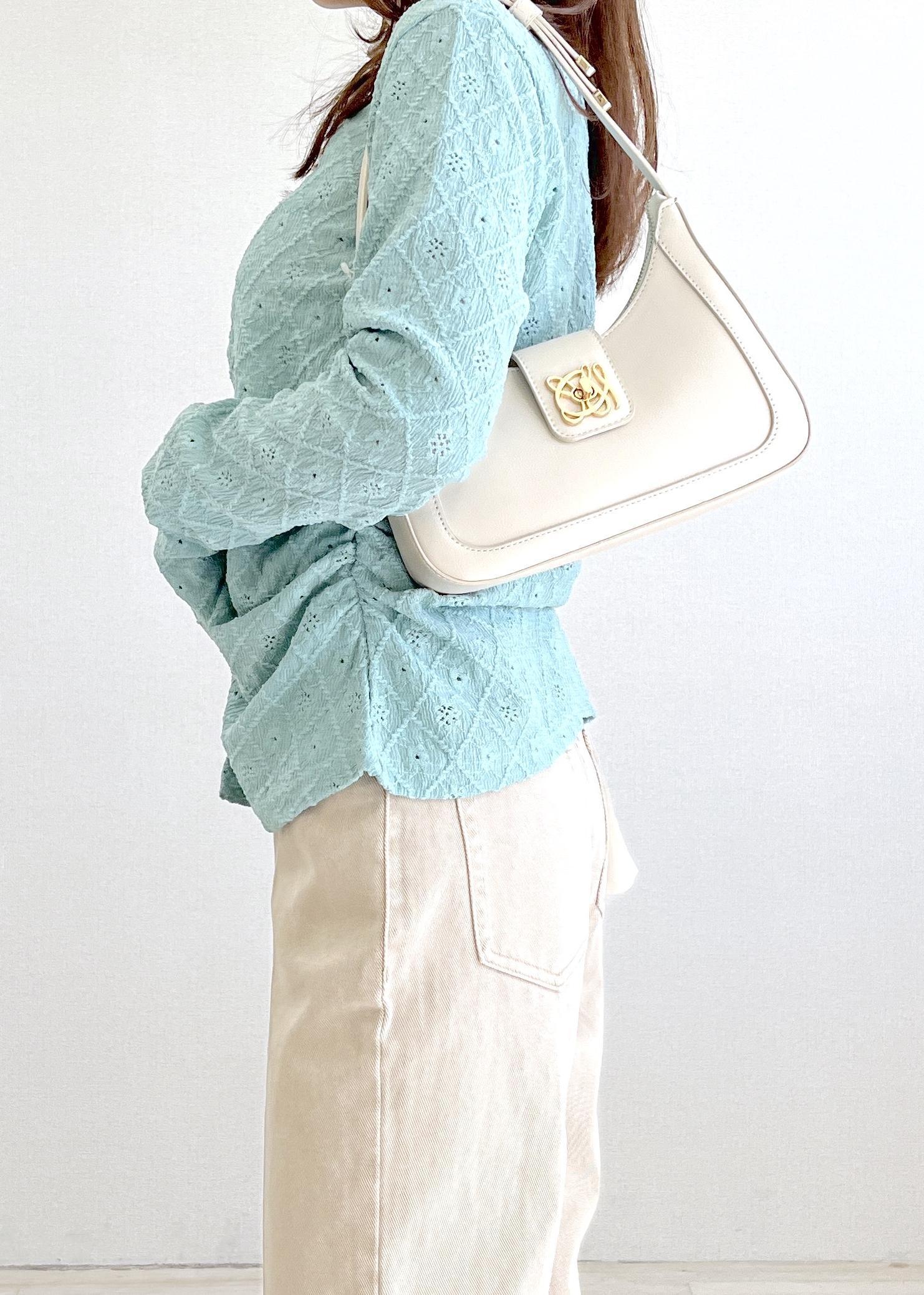 VIS【180℃美人見え】ハンドルリボンワンショルダーバッグ/新色追加キナリ / F¥5,929レビュー小ぶりですが、ミニ財布やスマホが入るサイズです◎