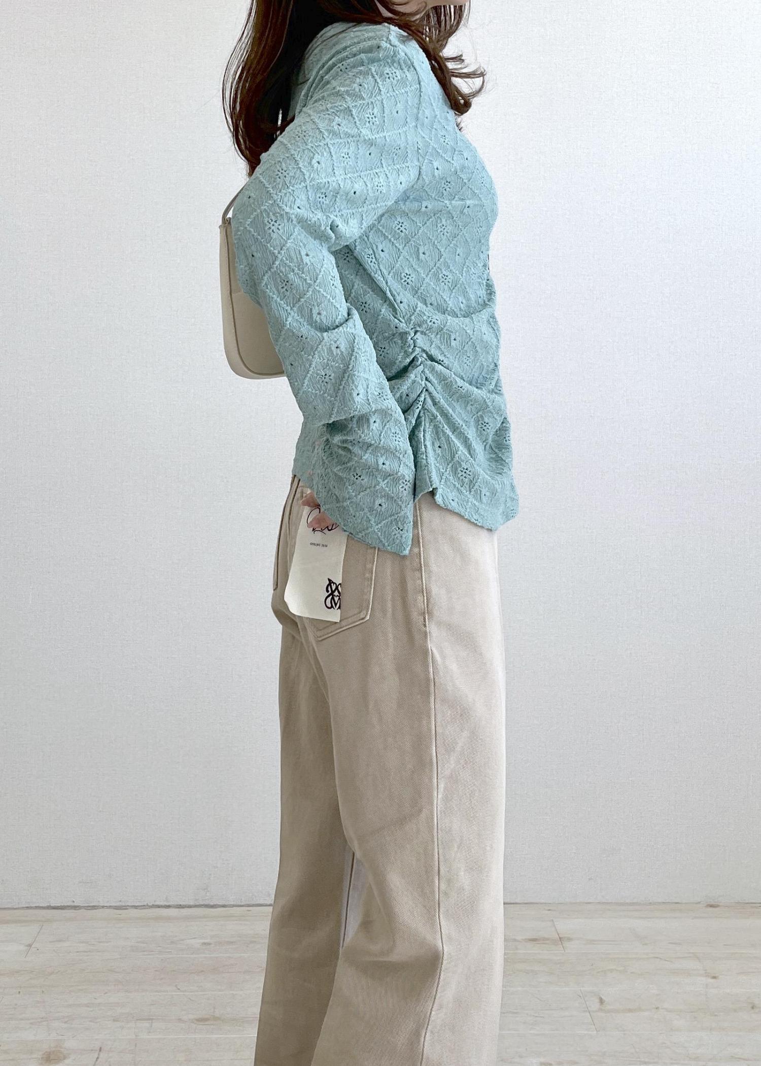 腰回りはスッキリとしていて、太もも辺りからゆったりするので、小柄さんももたつかず履けます。