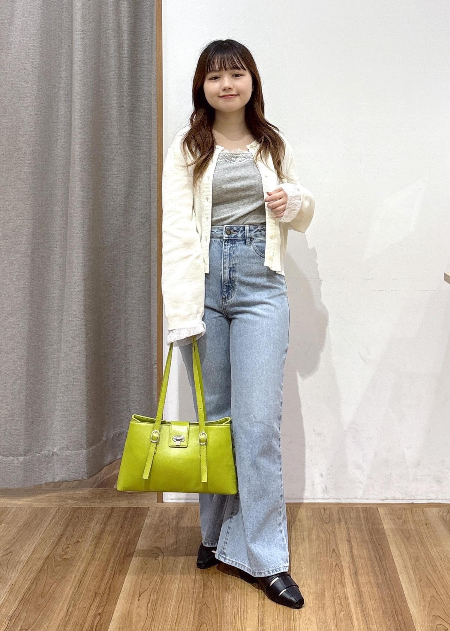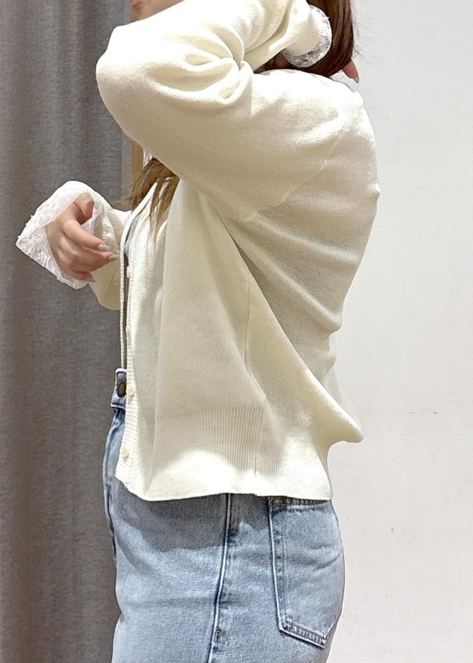 春っぽい繊細なレースが可愛らしいカーディガンとキャミソールを組み合わせて、着るだけで存在感のあるコーディネートにしてみました。