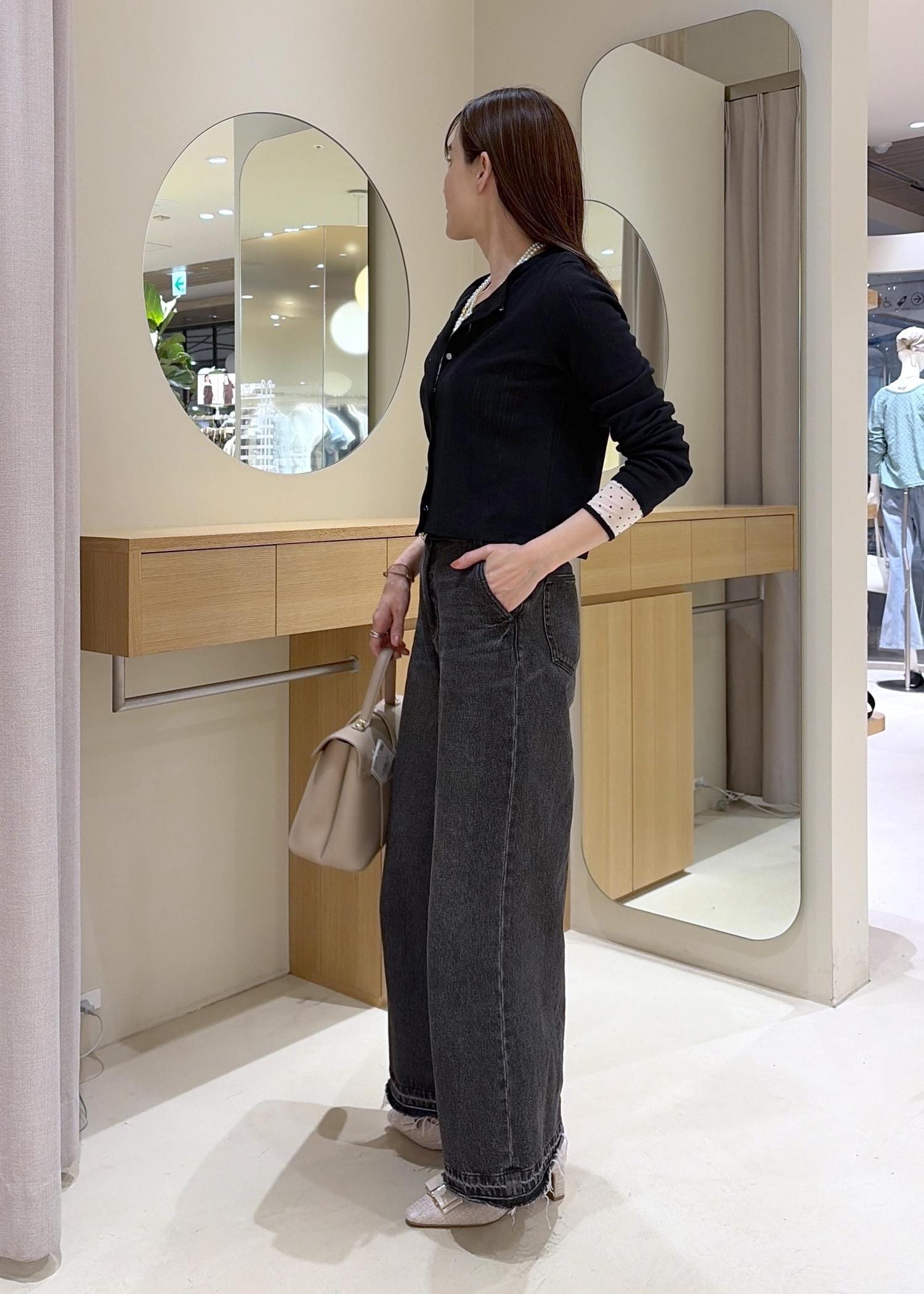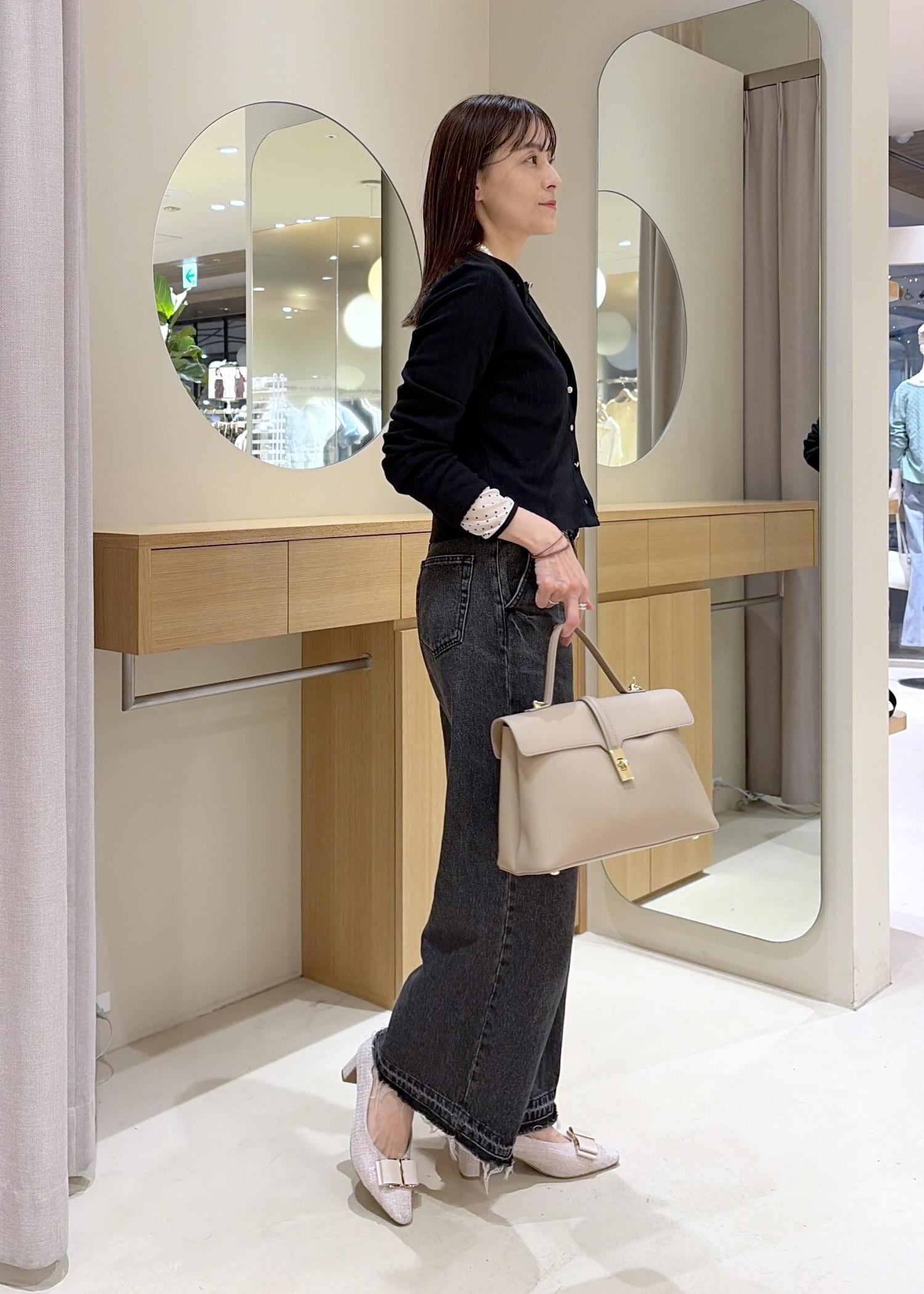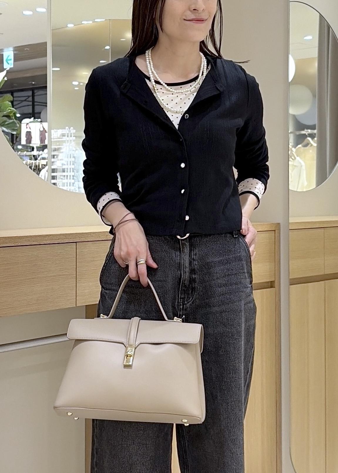 コンパクトに使える形なので、カーディガンでも華奢見えになります。
