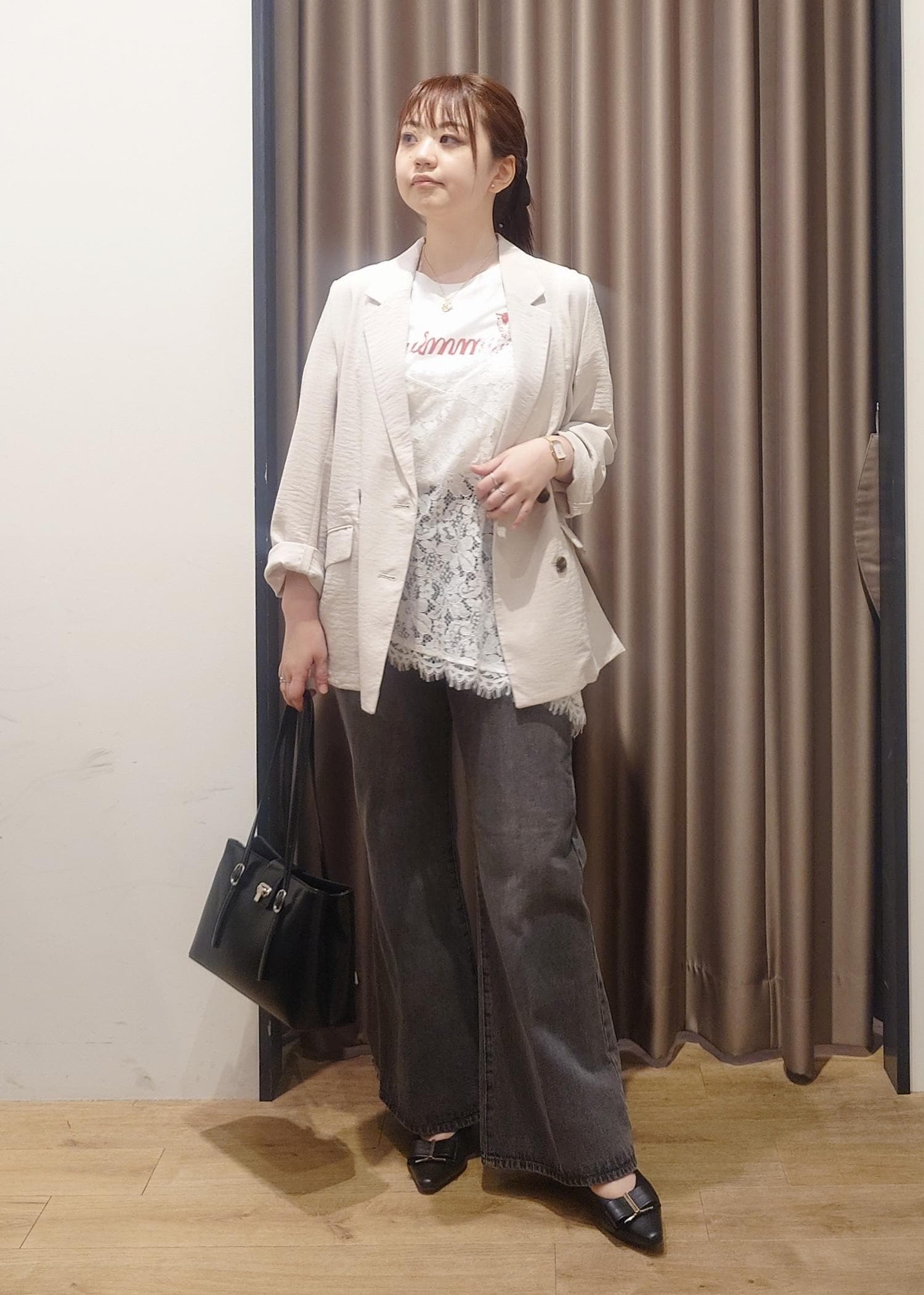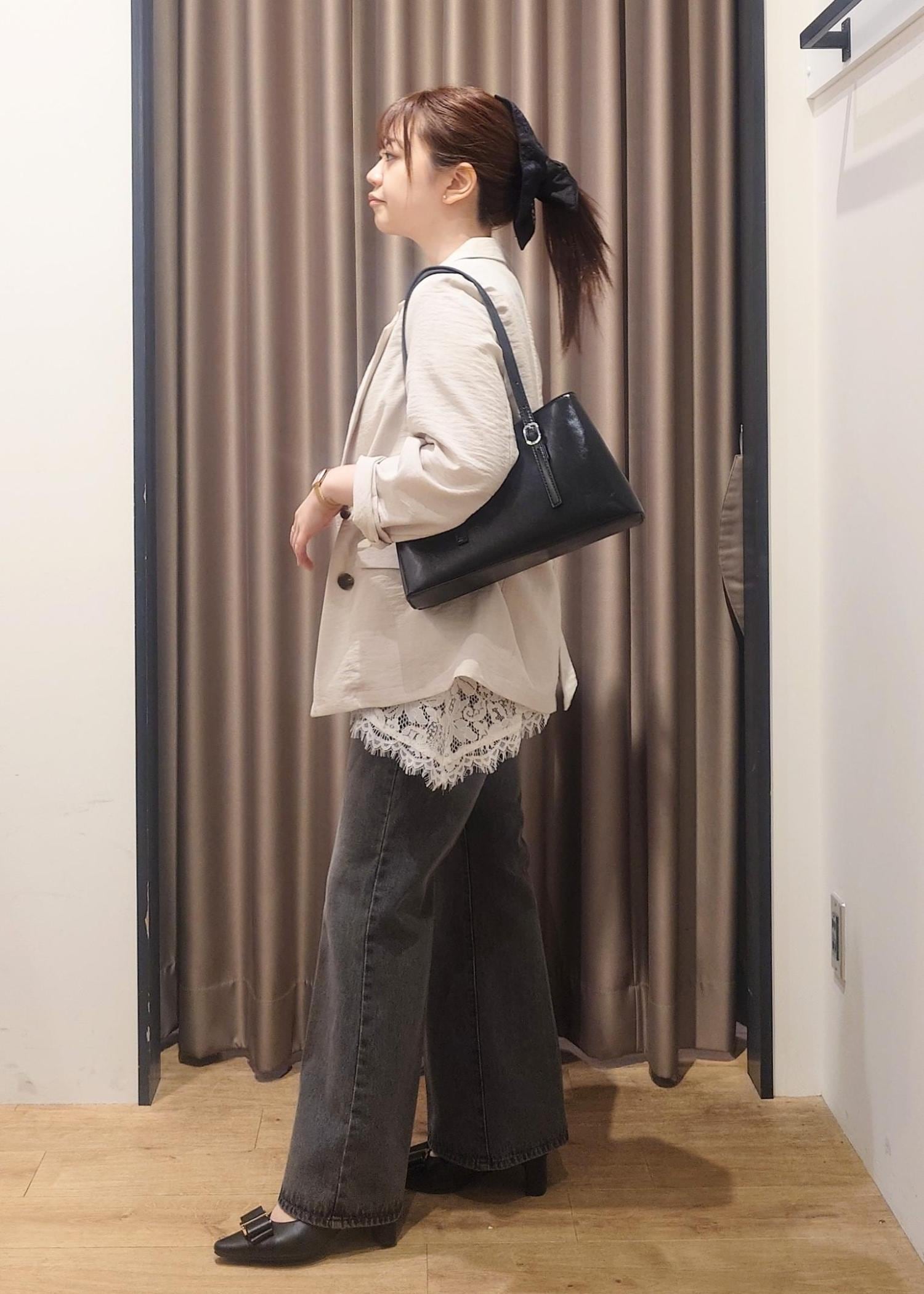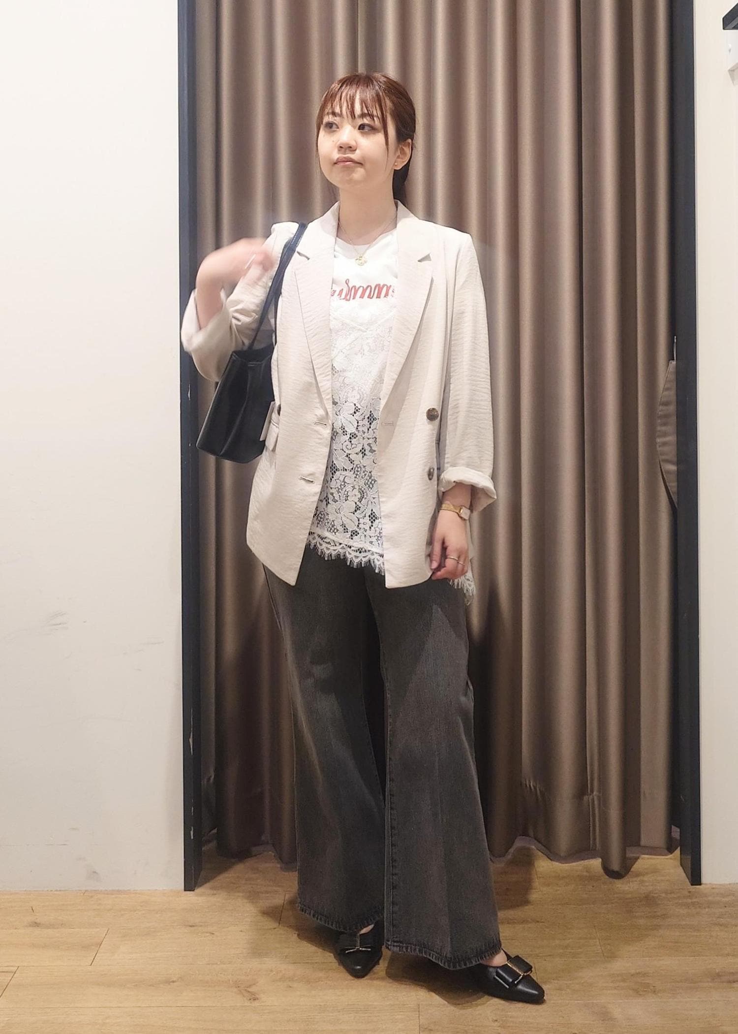 身幅はややゆったりめですが、レースなのでかさばらずにレイヤードスタイルをつくれます。 -