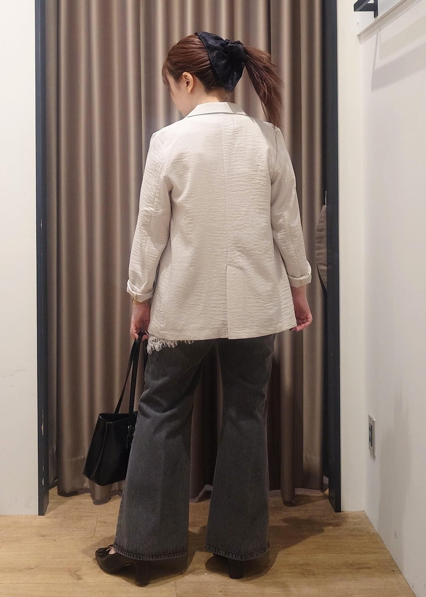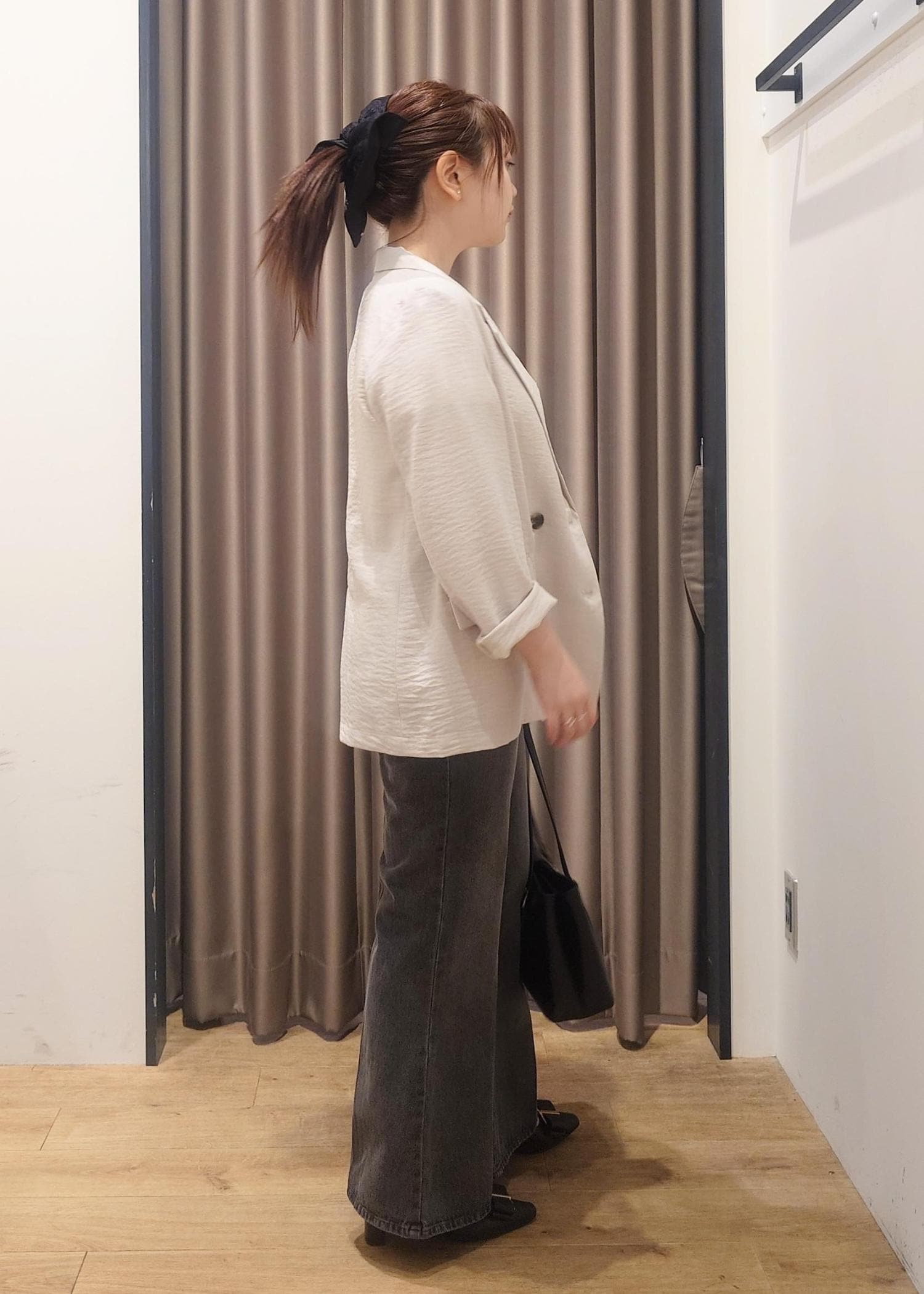 157cm,Sサイズでヒップがギリギリ隠れるくらいの丈感。 -