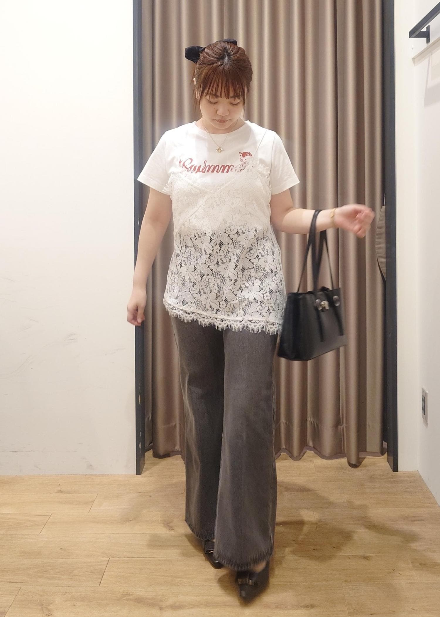 トレンド感のあるレースキャミと大人気SWIMMERコラボTシャツを使ったコーデ。