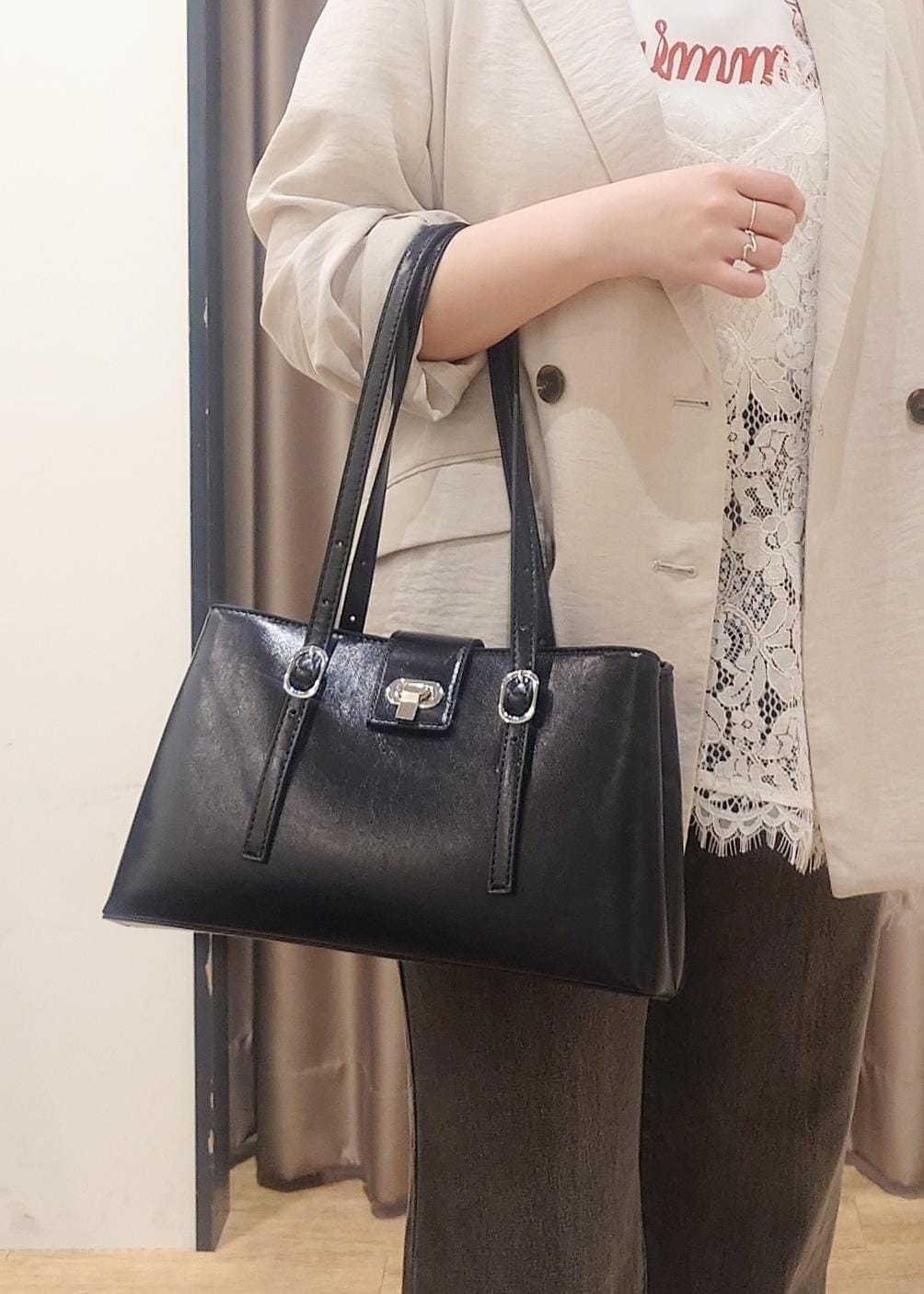 VIS2層ロングハンドルバッグブラック / F¥6,919レビュー見た目以上に沢山荷物が入るバッグ。