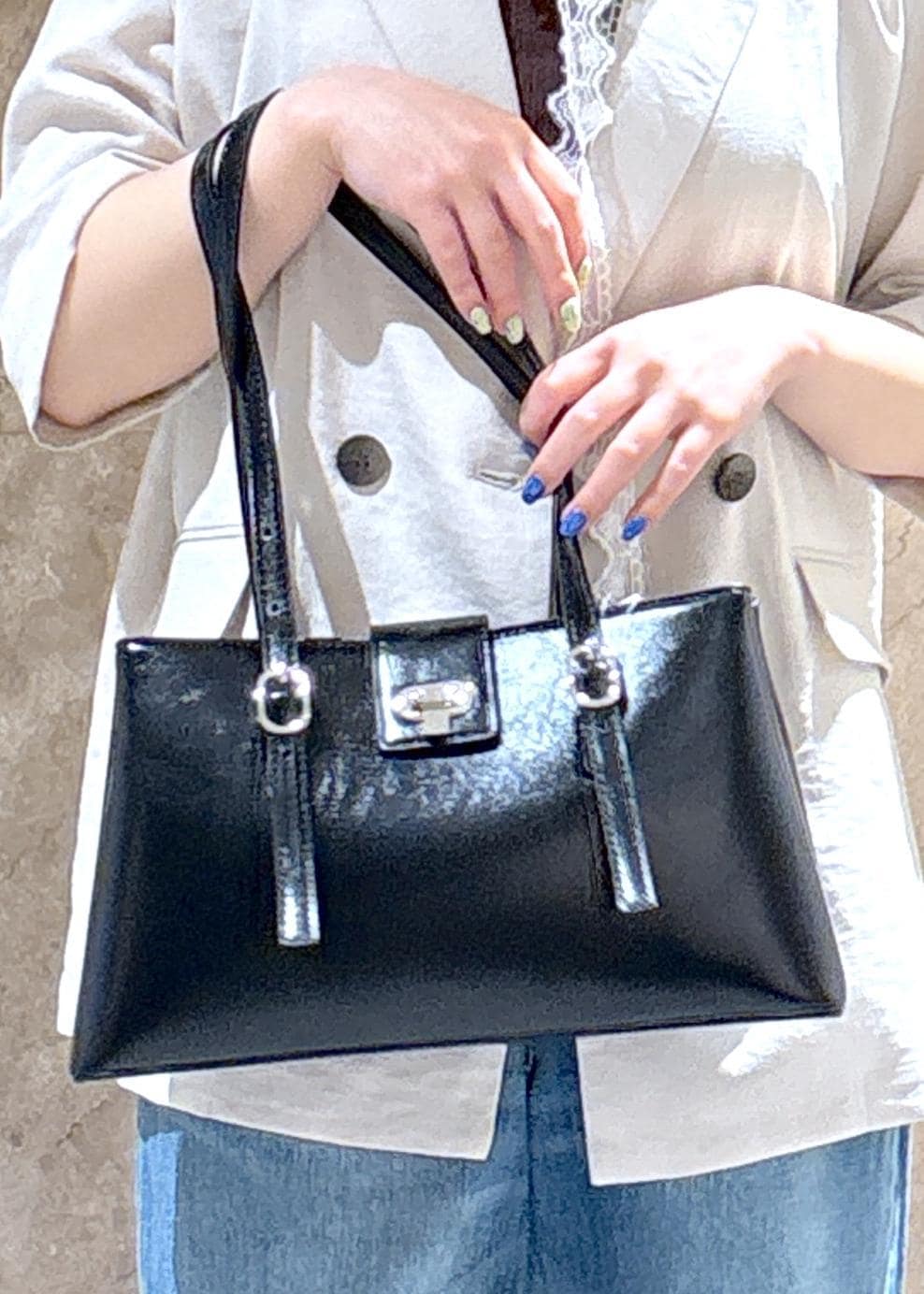 VIS2層ロングハンドルバッグブラック / F¥6,919レビューレザー風の高見えバッグ。