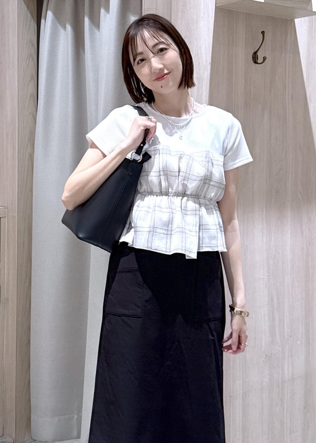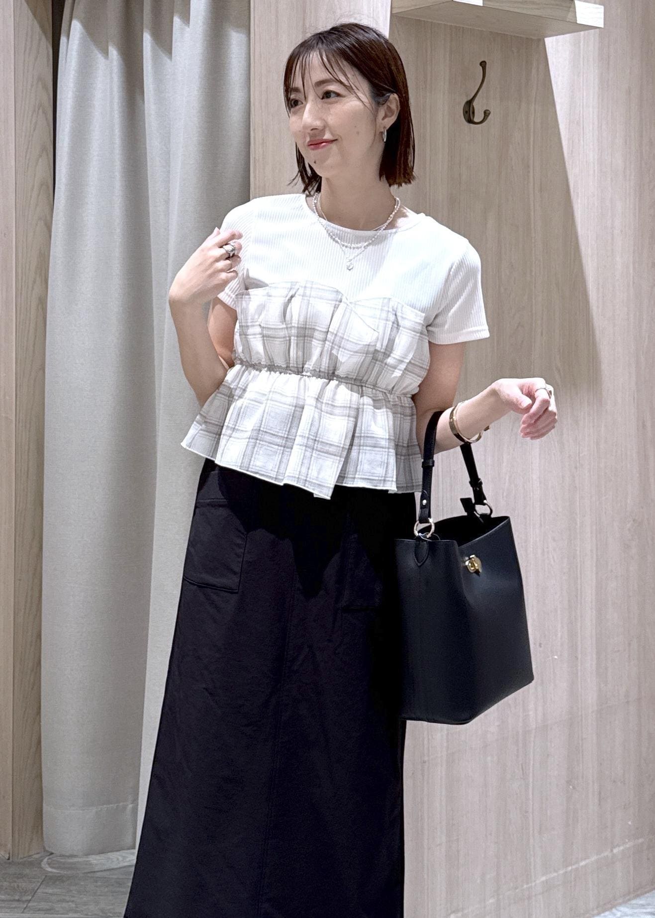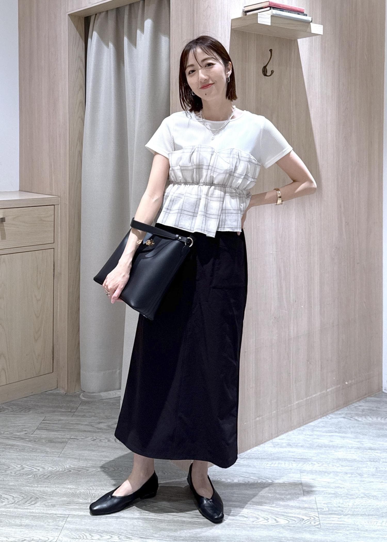 黒系のアイテムと合わせてオフィスカジュアルにスタイリングしました。