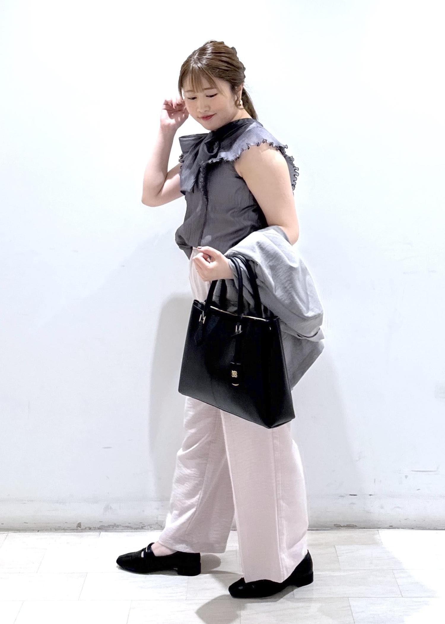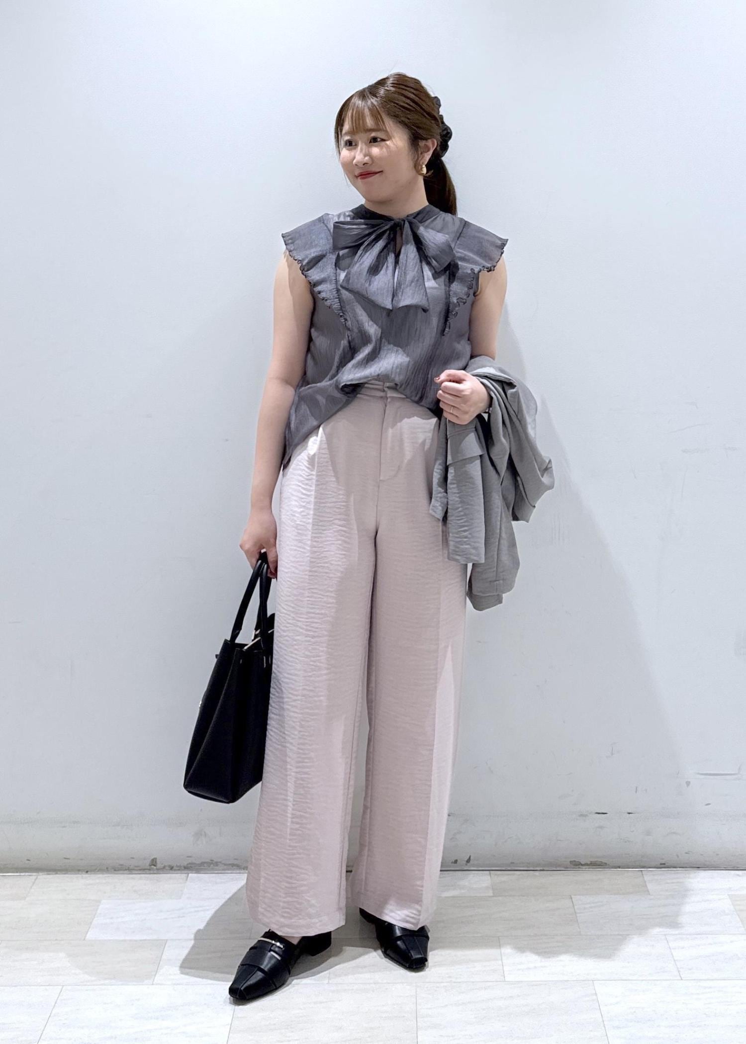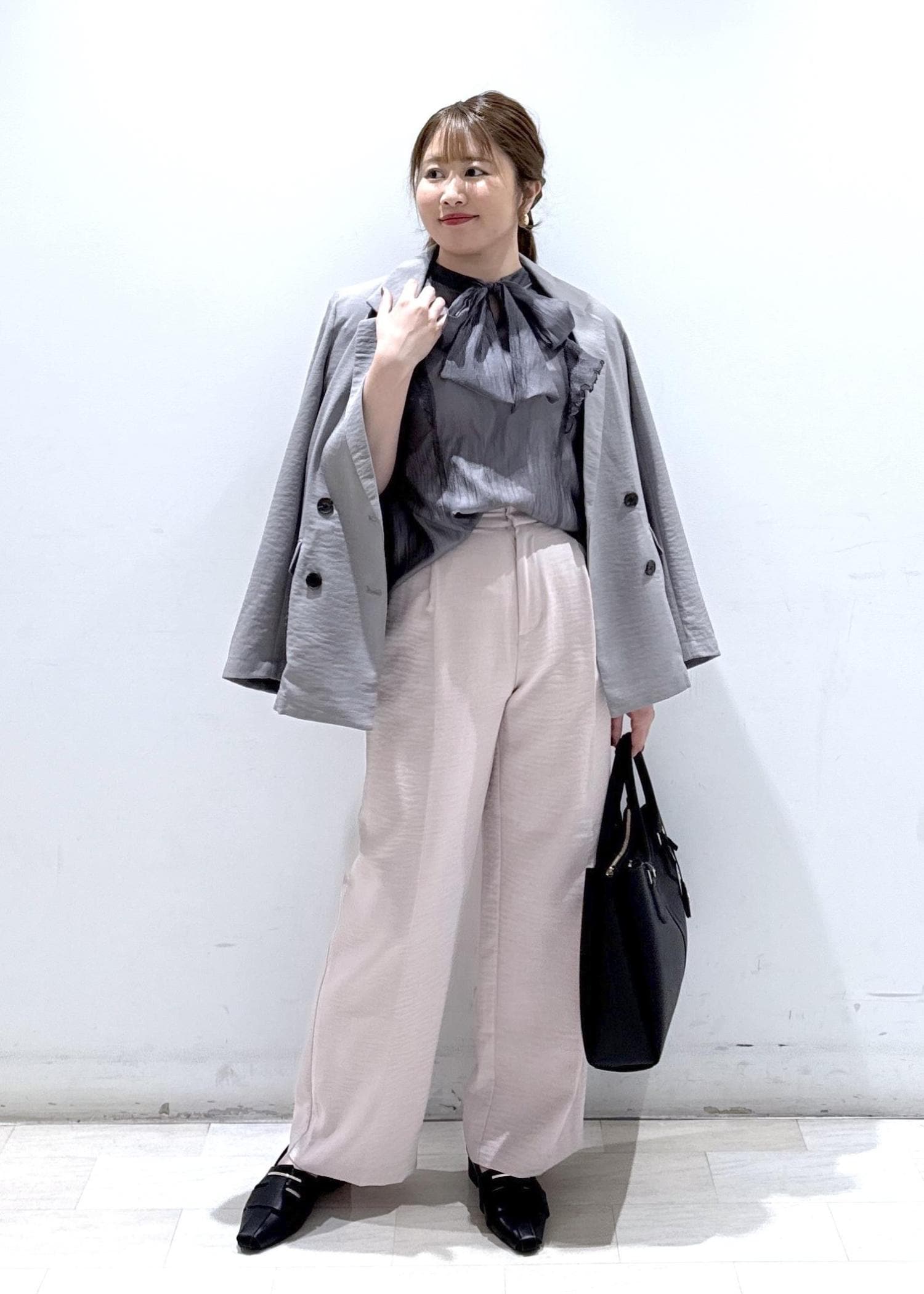 今回は新作で入荷しました、リボンボウタイブラウスに美easyシリーズのジャケットセットアップの色違いと合わせて着てみました。リボンはフェミニンな印象ではありますが、ジャケットと合わせることで綺麗めな印象にもなるので大人っぽく着こなすこともできますよ!グレー×ピンクでこの春にぜひチャレンジしてみませんか?*