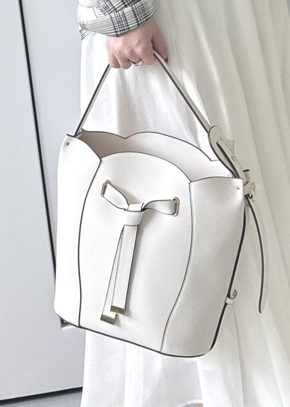 VISフラワーカットショルダーバッグ/2WAYオフホワイト / F¥7,909レビューマチが広くてたくさん入ります!