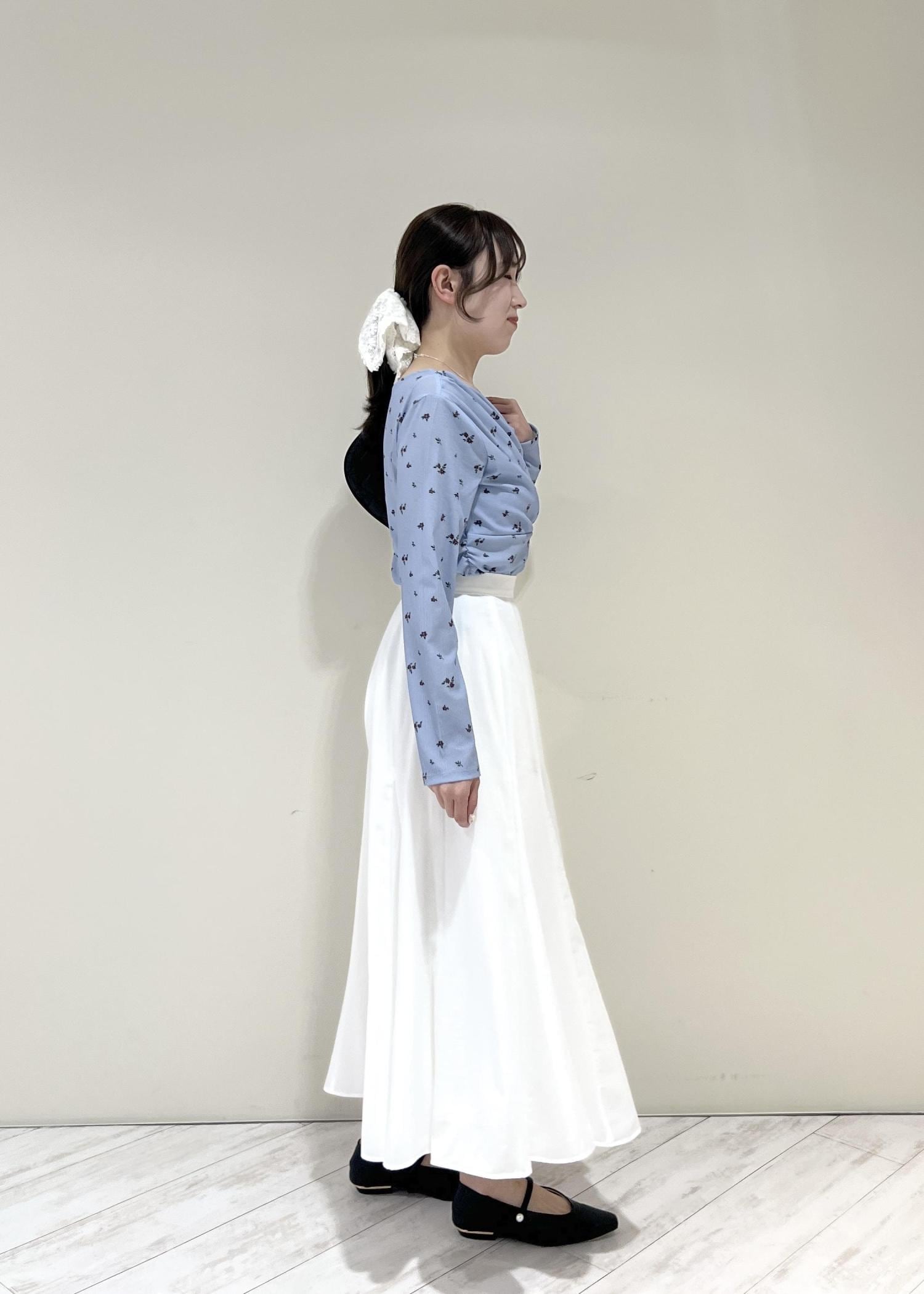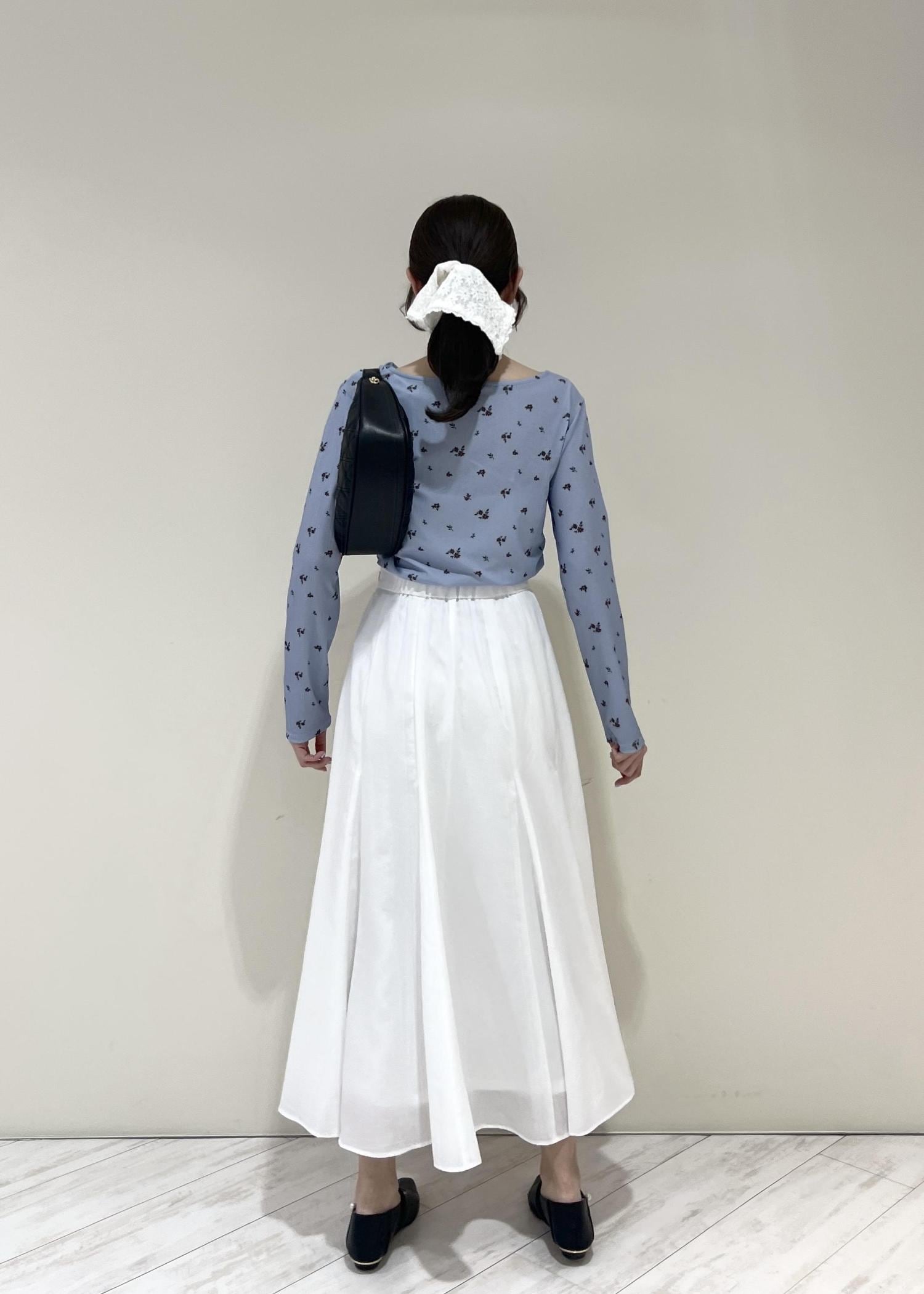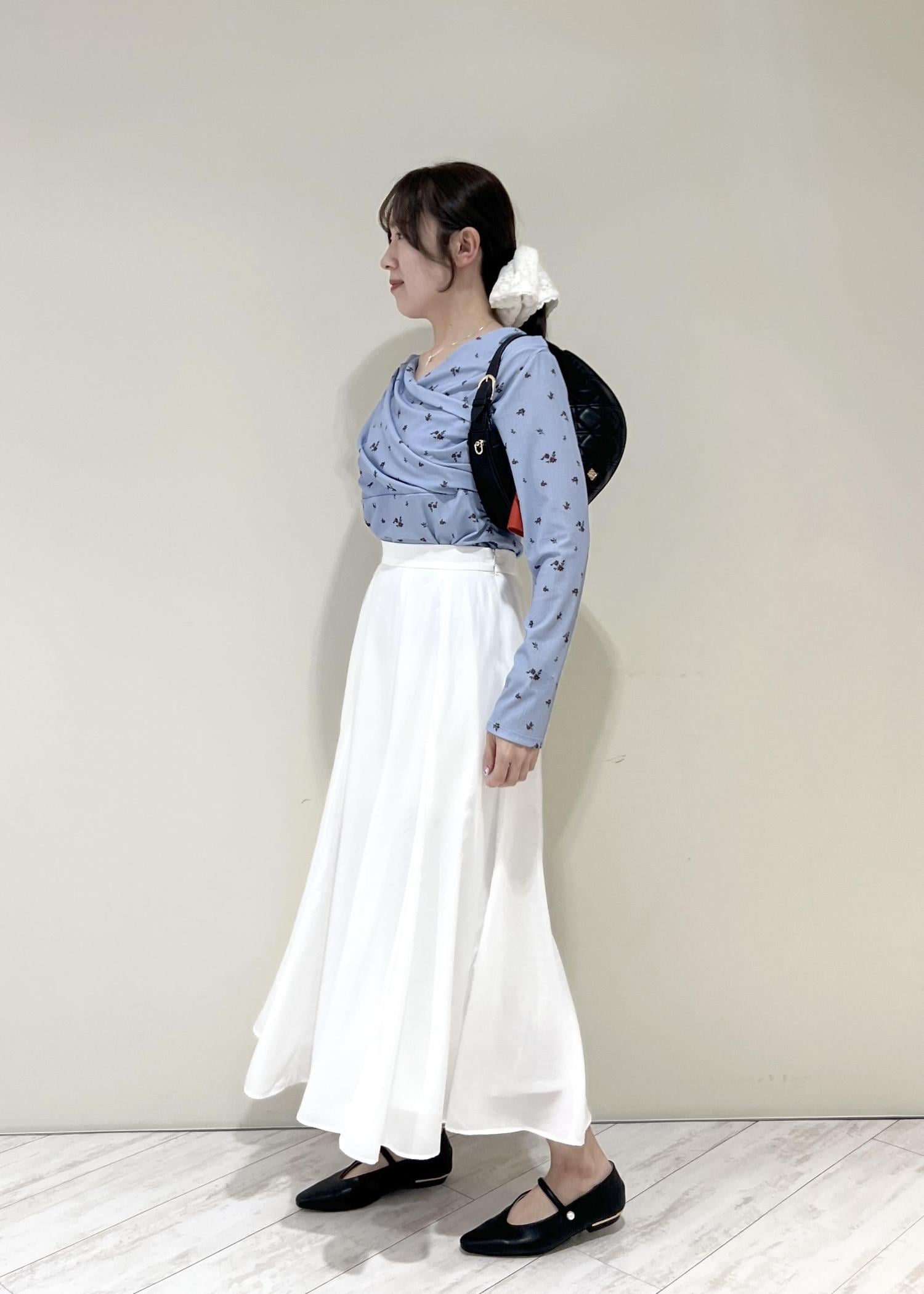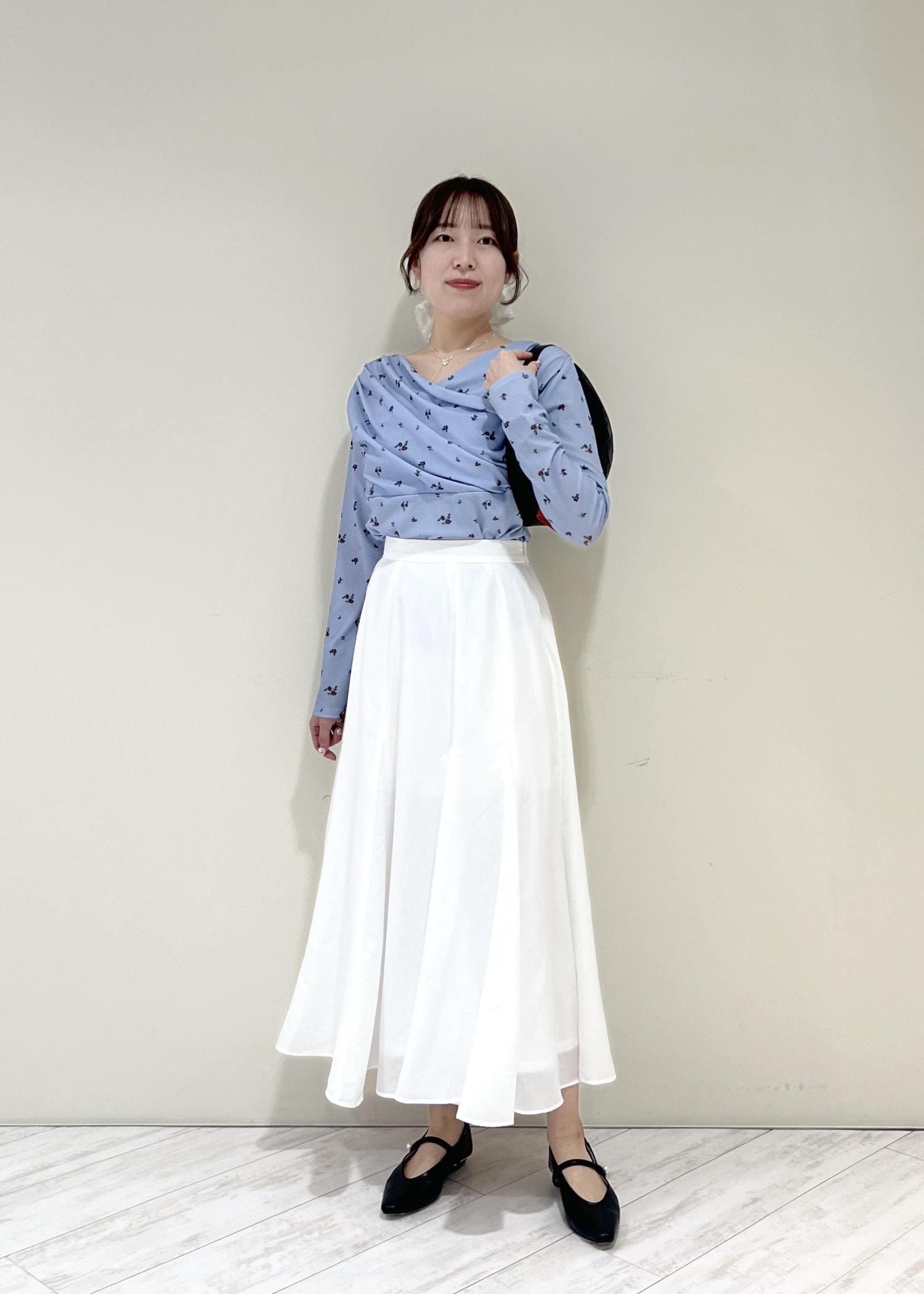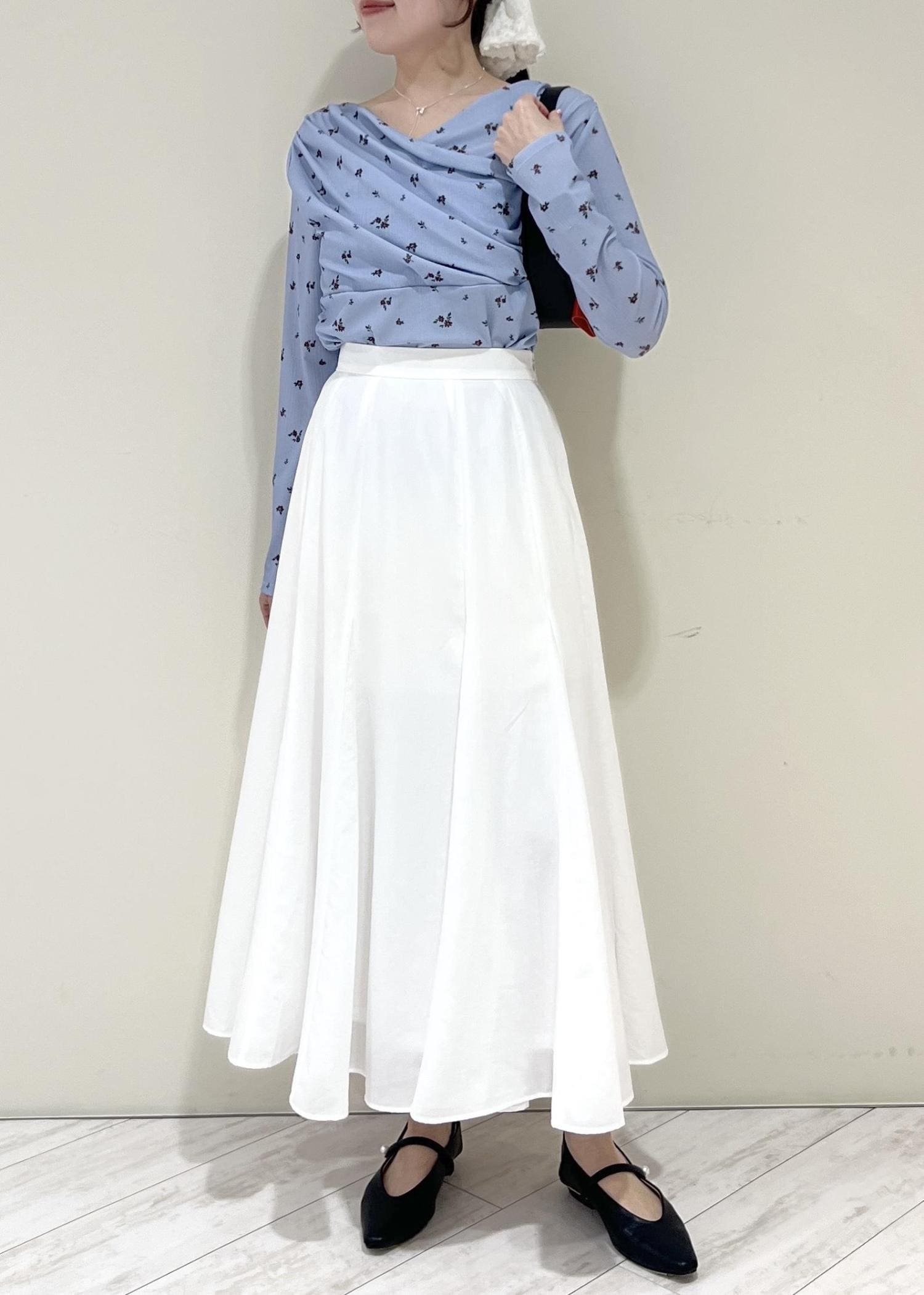 VIS気流染めフレアースカート/イージーケアオフホワイト / F¥6,589レビュー生地感は柔らかく、ウエストはゴムなで楽に着られます!くるぶし上にくる着丈なのでぺたんこ靴を履いてもバランス良く合わせられました◎