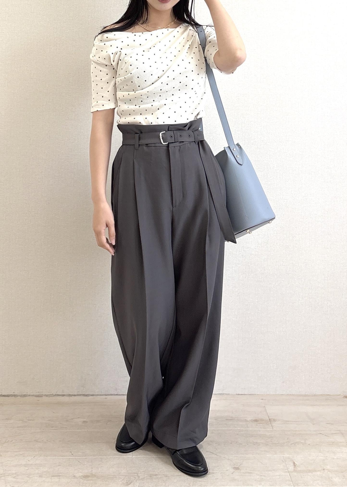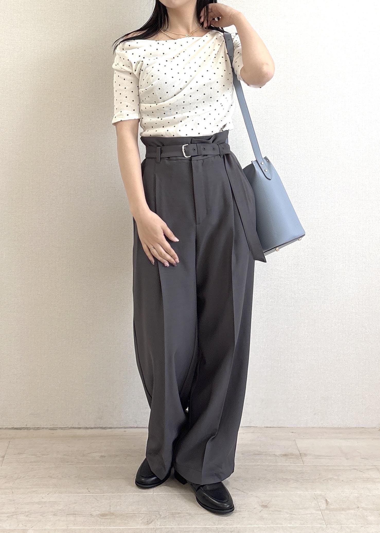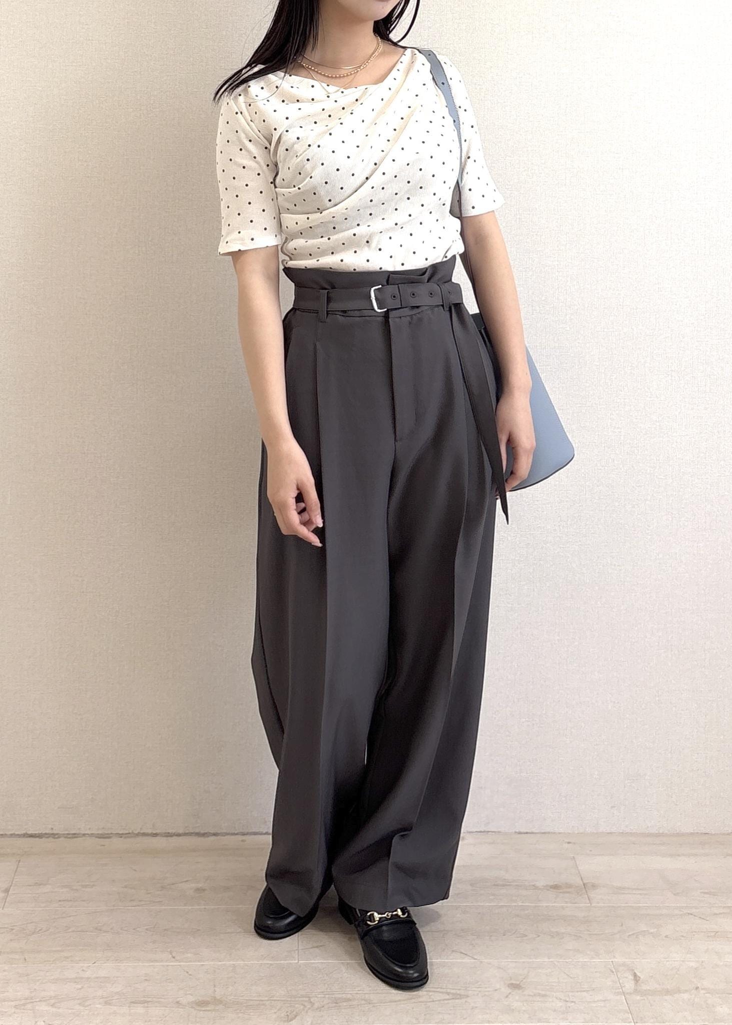 予約VISベルトディティールタックワイドパンツ/イージーケア・接触冷感チャコール / S¥6,589レビューワイドパンツながらセンタープレスが入っていて細見えします!
