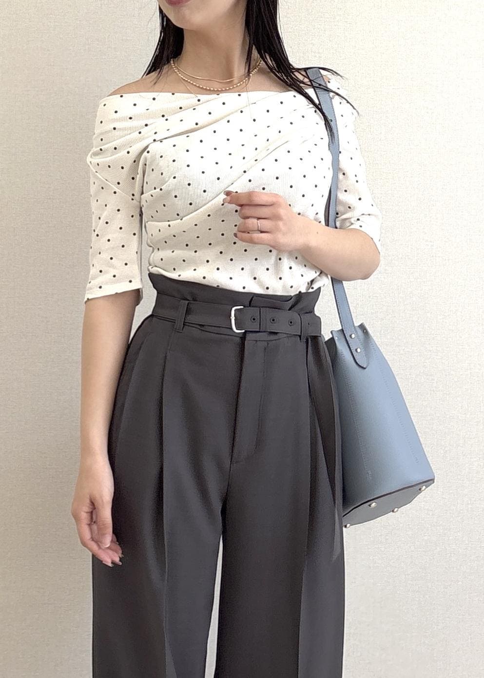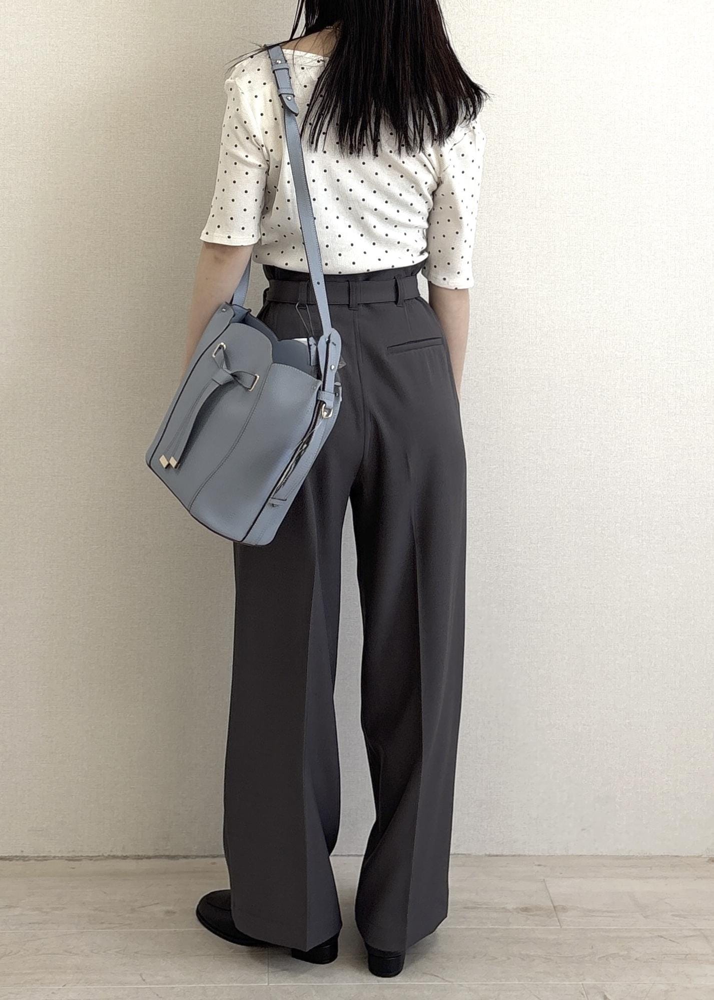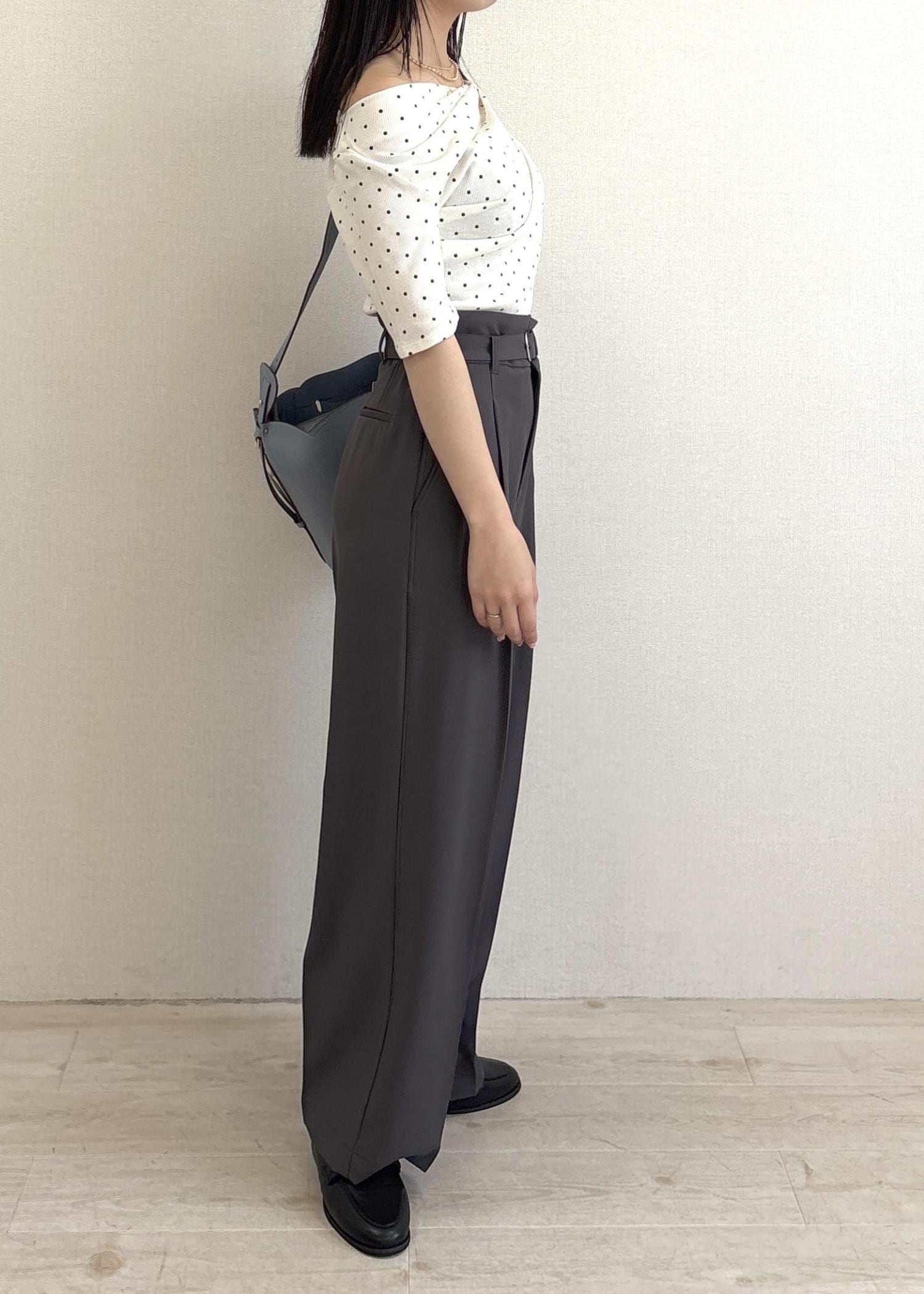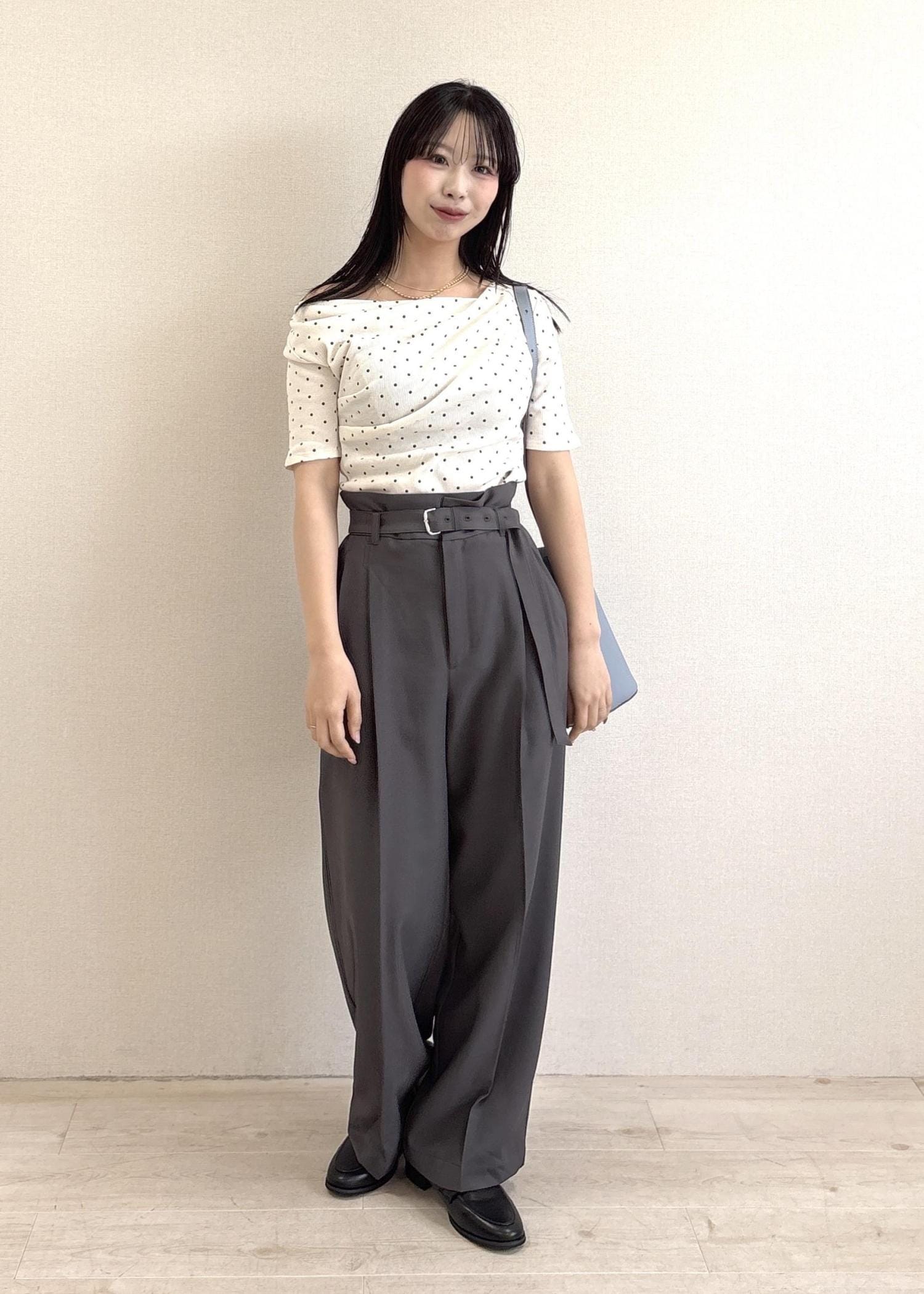 予約VISベルトディティールタックワイドパンツ/イージーケア・接触冷感チャコール / S¥6,589レビューワイドパンツながらセンタープレスが入っていて細見えします!