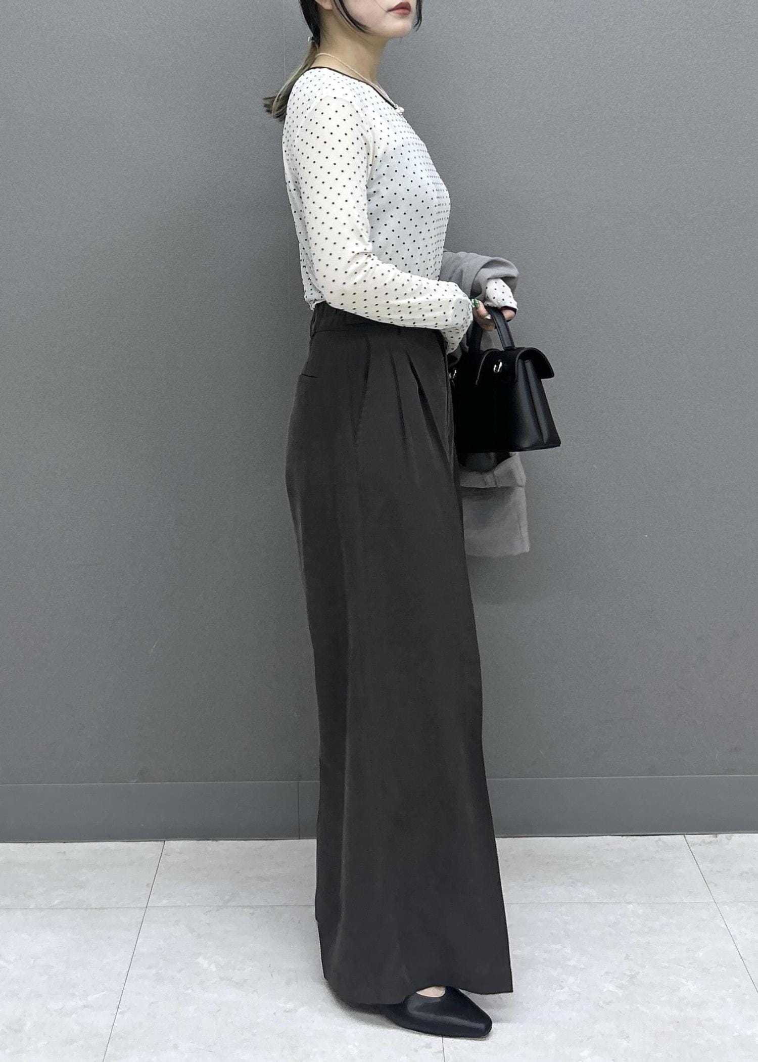 VISツータックワイドパンツ/イージーケアチャコール / S¥6,920レビュー157cmでSサイズを着用しています。