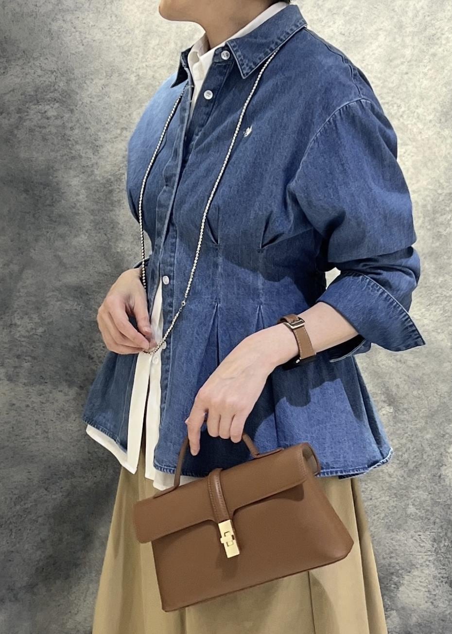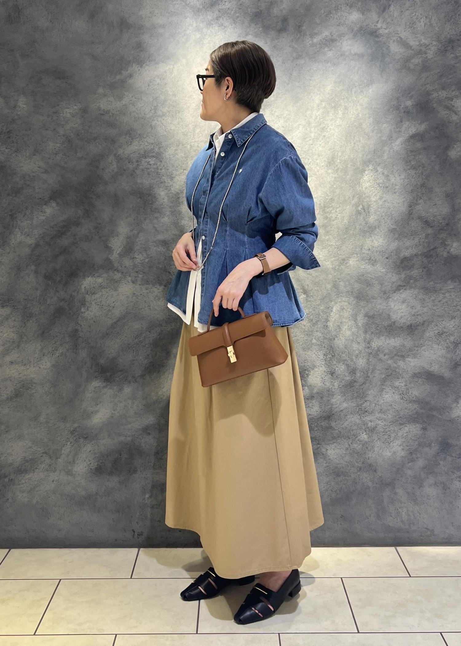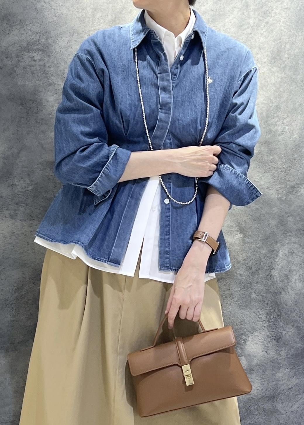 ポイントはシャツがウエストタックでデザイン性があることでちょっと個性的に。