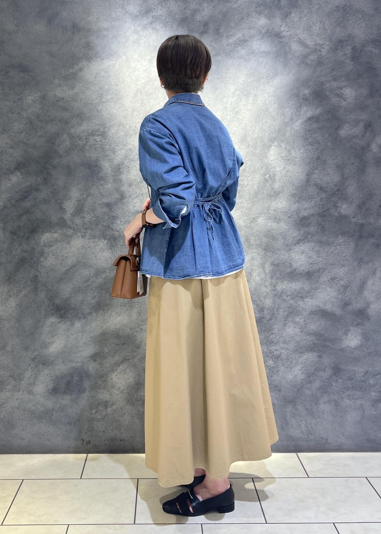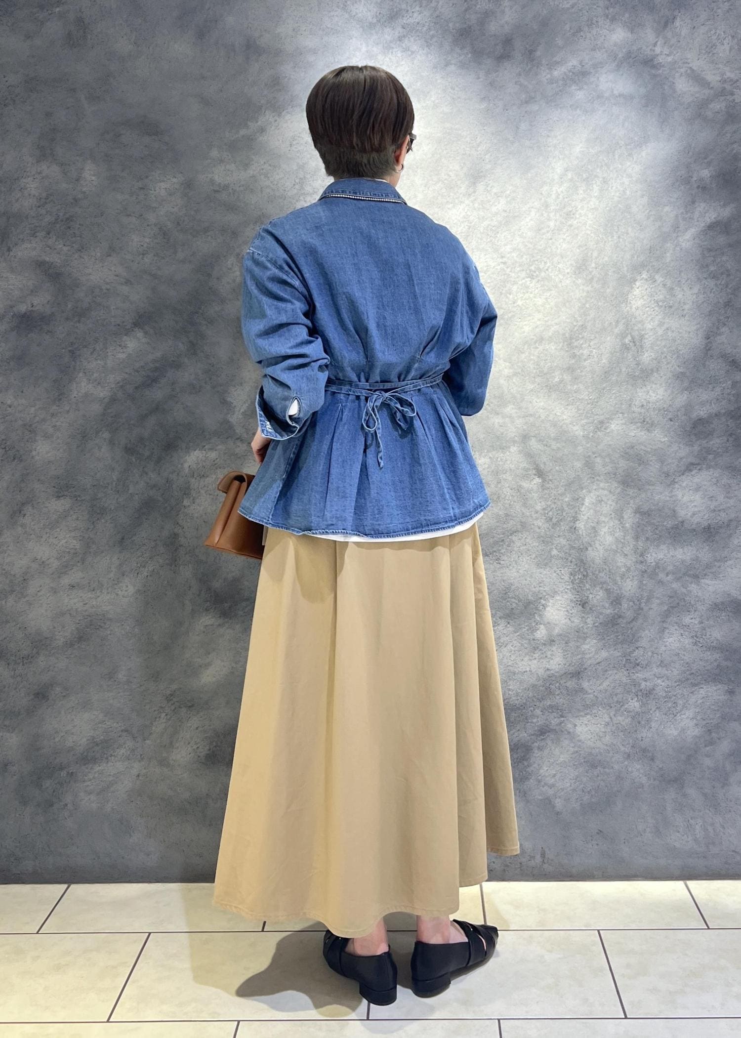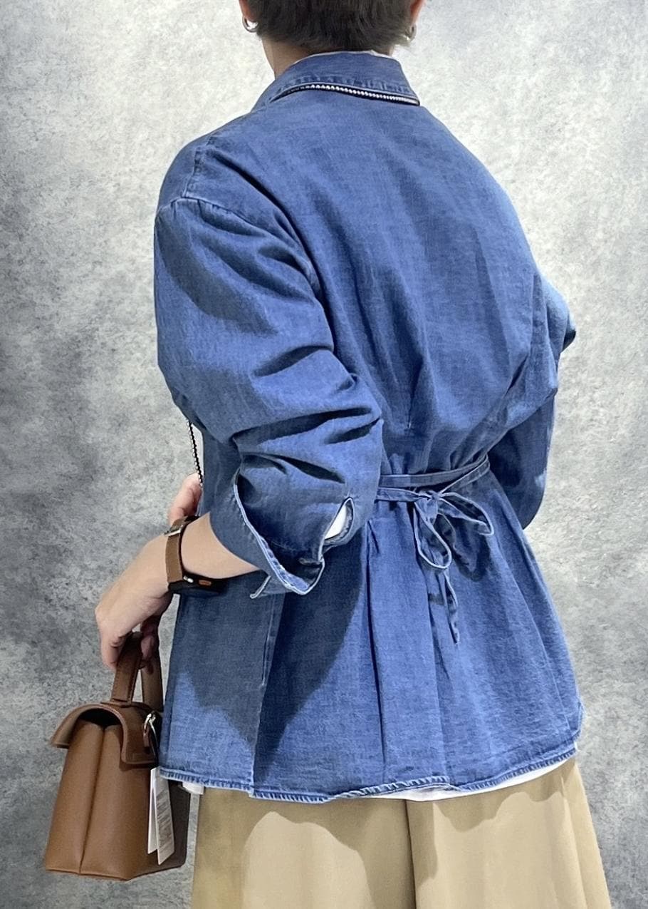 ポイントはシャツがウエストタックでデザイン性があることでちょっと個性的に。